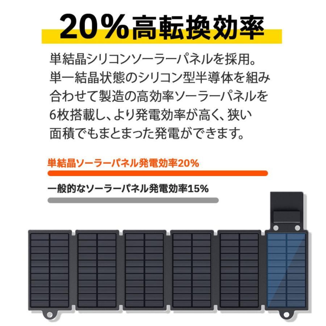 単結晶パネル6枚搭載 ソーラーチャージャー 折り畳み式 充電器 ポータブル 高転換効率 10W USB