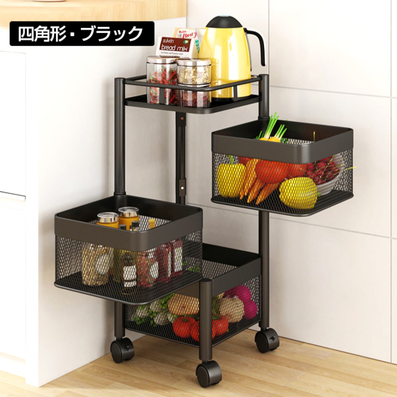 キッチンワゴン 回転 多肉棚 バスケットトローリー ツールワゴン 天板 キャスター付き 3段