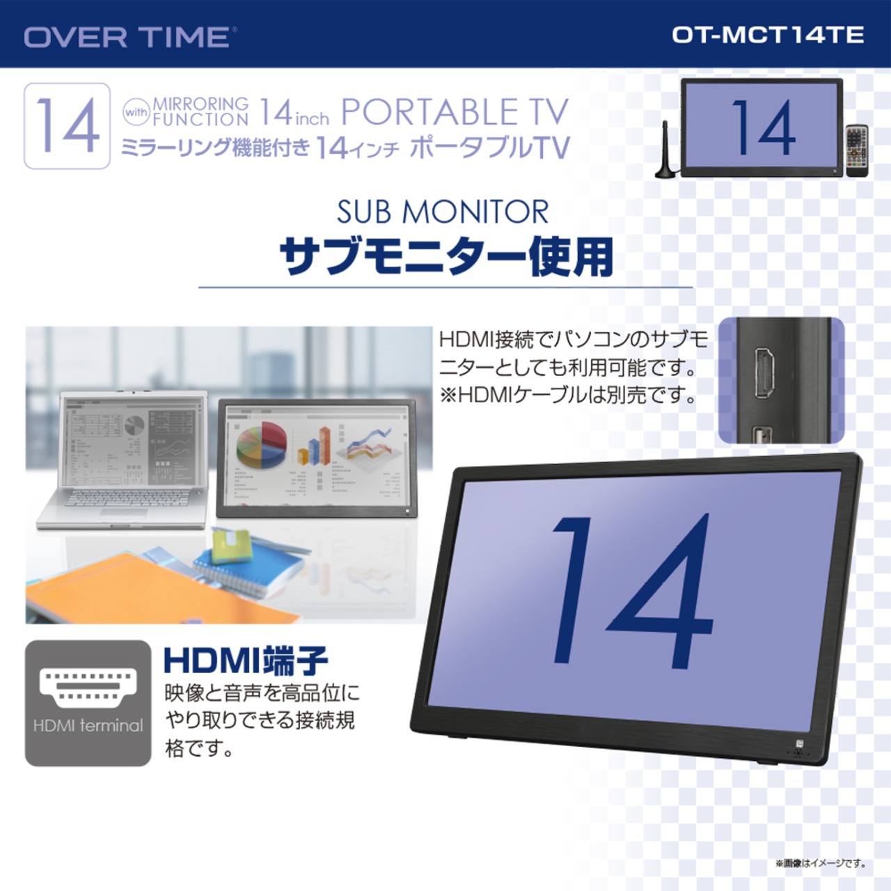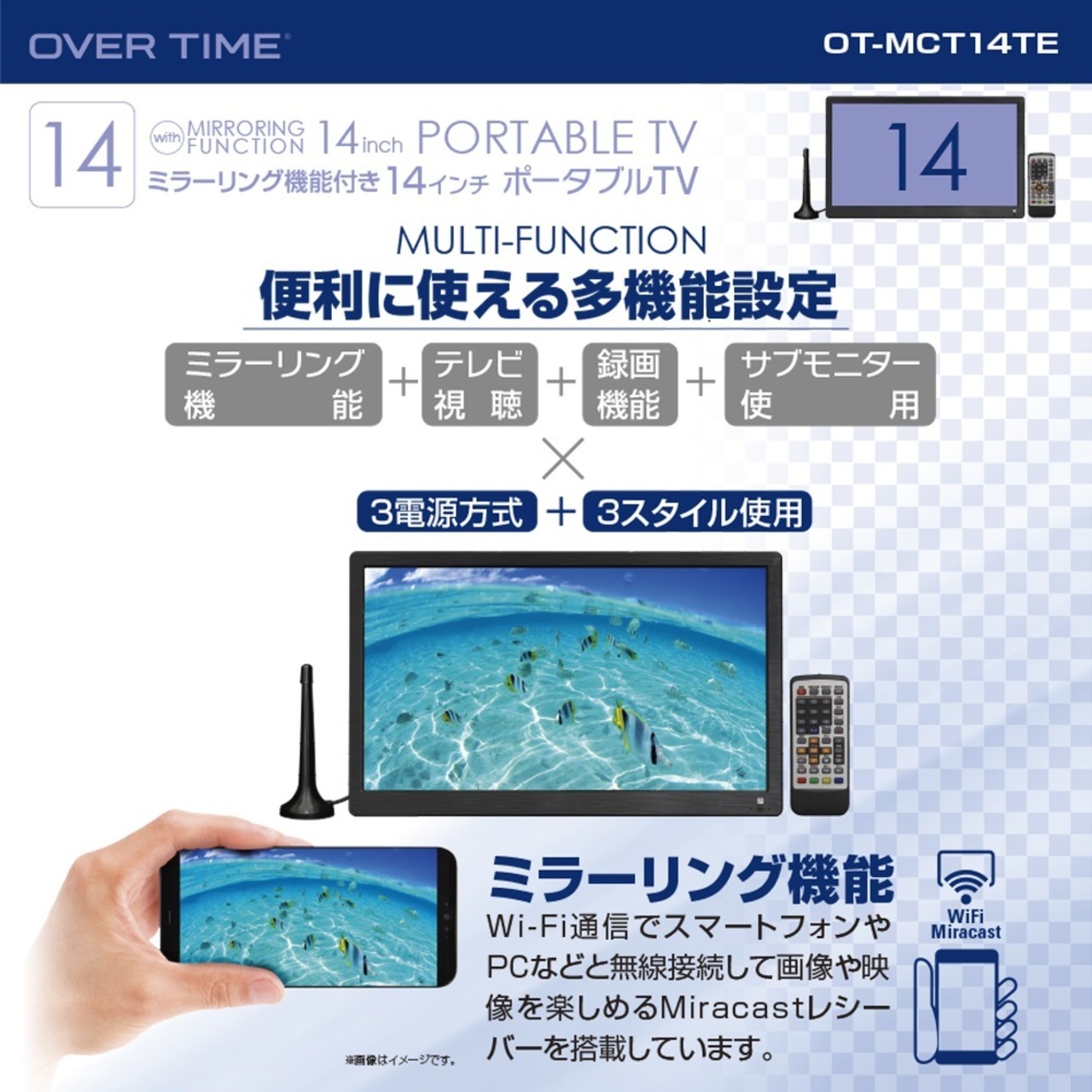 14インチ ミラーリング機能付き ポータブルTV OT-MCT14TE