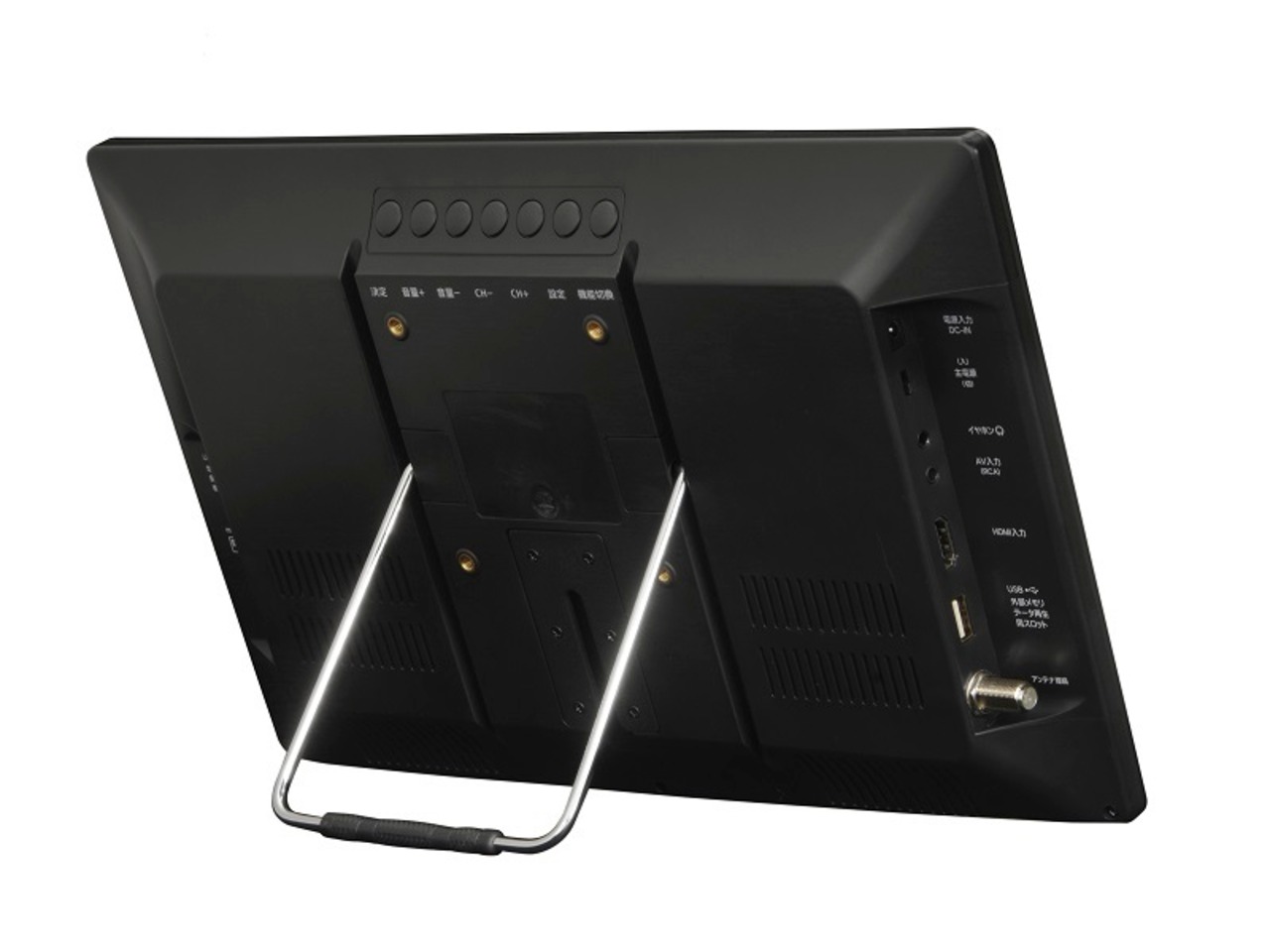 入力端子:アンテナ、DC電源、USB×2、(番組録画、メディア再生)AV、HDMI、イヤホン(ステレオミニピン3.5Φ)、miniB-CADカードスロット