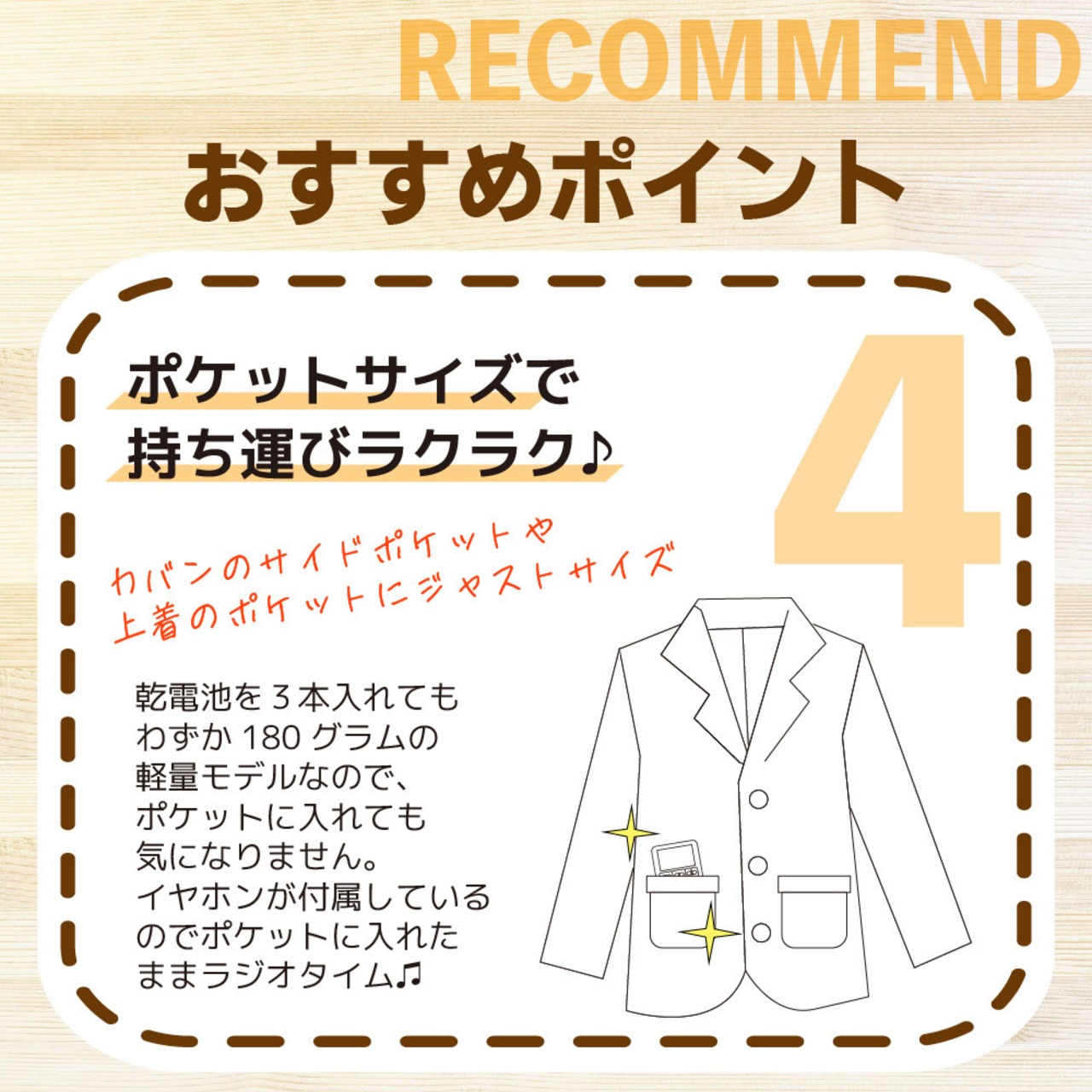 ポケットに入るサイズで持ち運びもラクラク、乾電池でもコンセントからでも給電できるので用途を選びません。【災害時にも使えて安心】