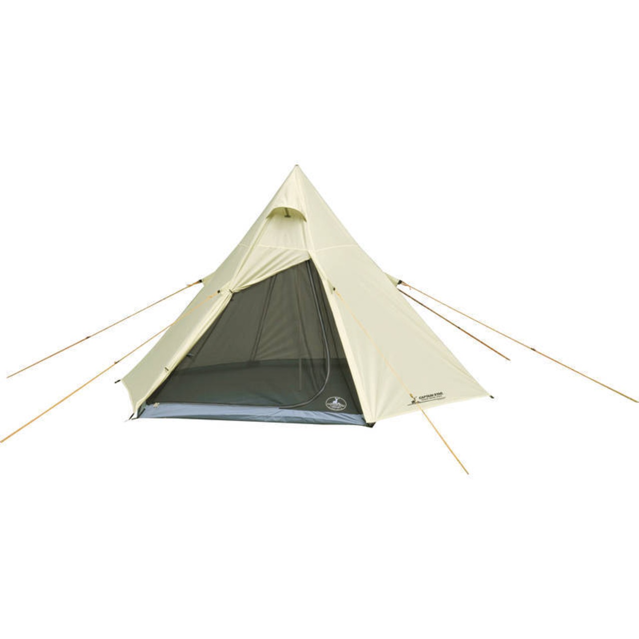 3~4人用の広さで6角形型フライシート単体で設営し、シェルターとして使用可能。軽量で丈夫なアルミポール1本使用。開閉可能なベンチレーション