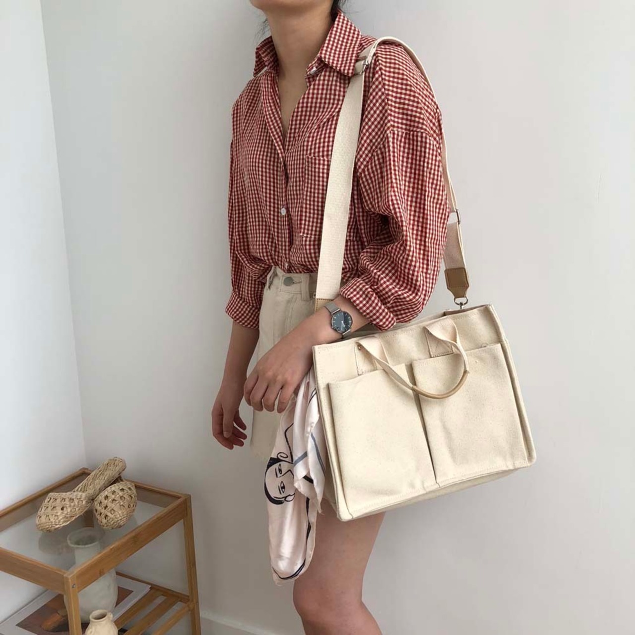 ●大収納肩掛けカバン レディース 学生 シンプル 無地 男女兼用 韓国 カジュアル 大きめ エコバッグ おしゃれ