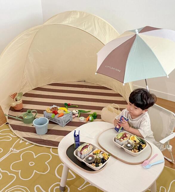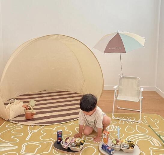 折りたたみ可能で収納しやすい 気軽に遊びに行く良いパートナー 重量1.5 KG 素材:ポリエステル布 カラー:ベージュ 寸法;145CM*146CM*110CM 一健式テントを開ける 一健式テントを開ける 折りたたみ可能で収納しやすい 気軽に遊びに行く良いパートナー