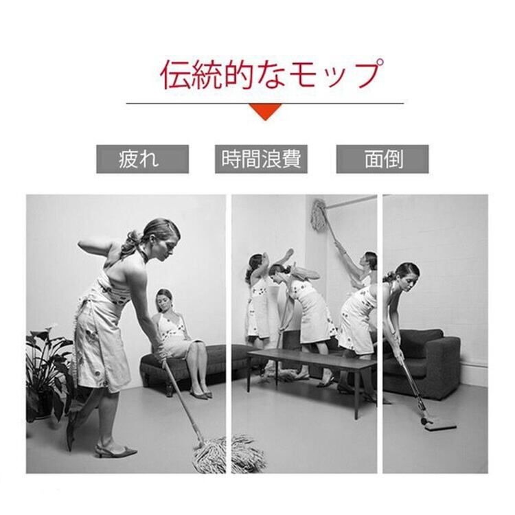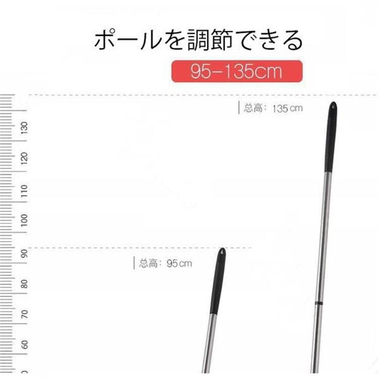 全長134cmで、手の届かない高い場所や窓ふき、畳や床など家中どこでもこれ一本でお掃除ができます。 モップは洗って繰り返し使えます。