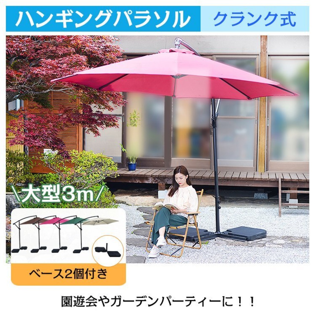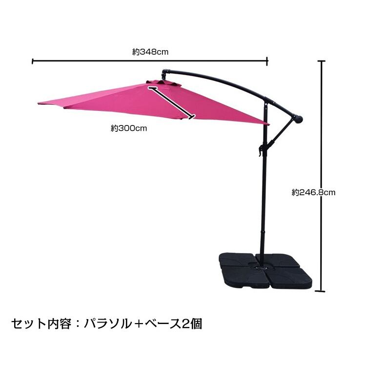 ハンギング パラソル セット ベース2個付き 300cm 大型 日よけ