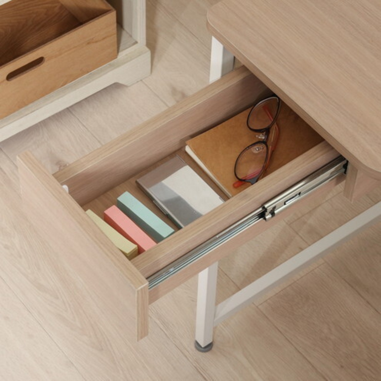 左右にステーショナリーなどを収納できる引き出しがついているので、天板をより広く使うことができます。