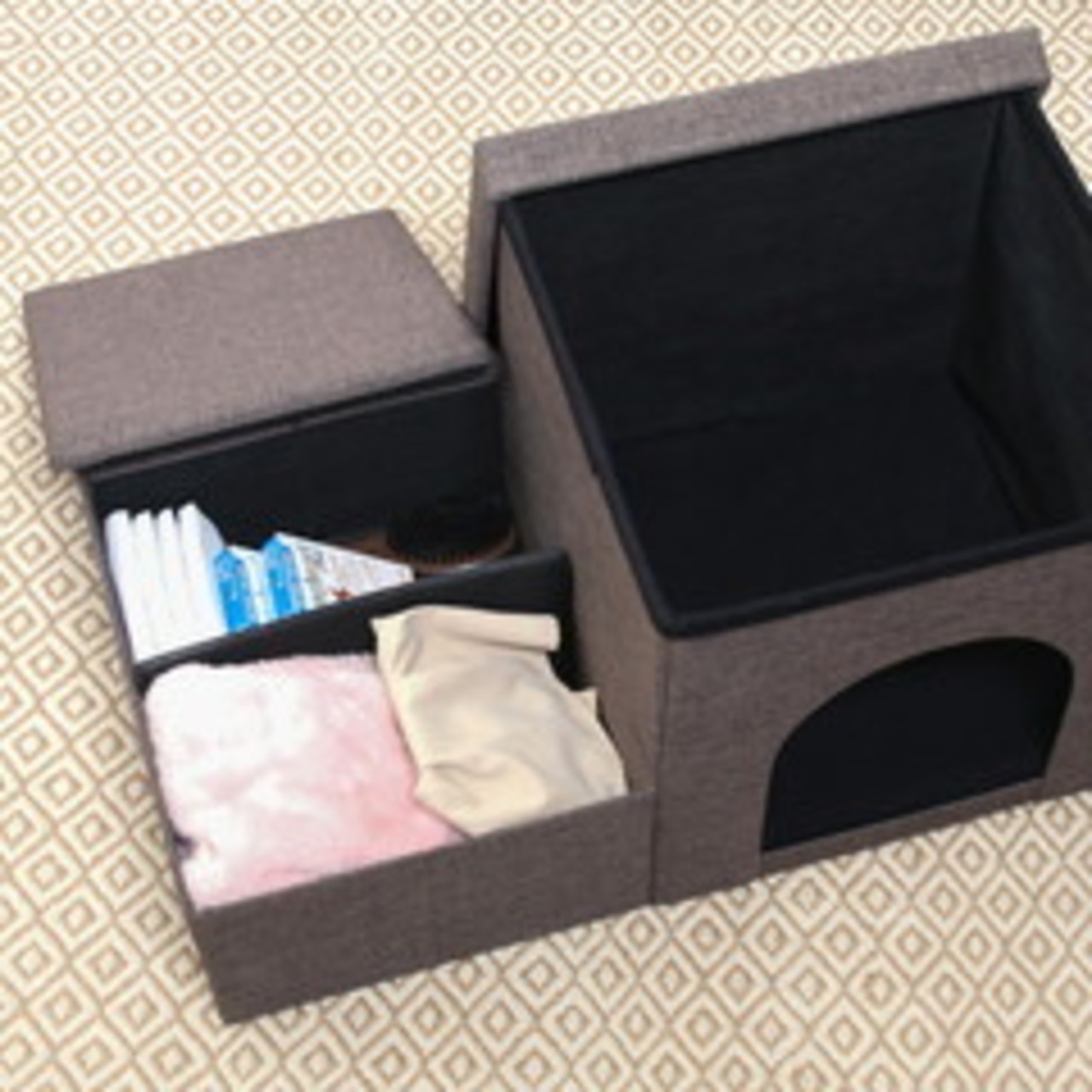 高さの低い箱の中にはマジックテープ付きの仕切りもついているので、ペットグッズをスッキリ収納することができます。