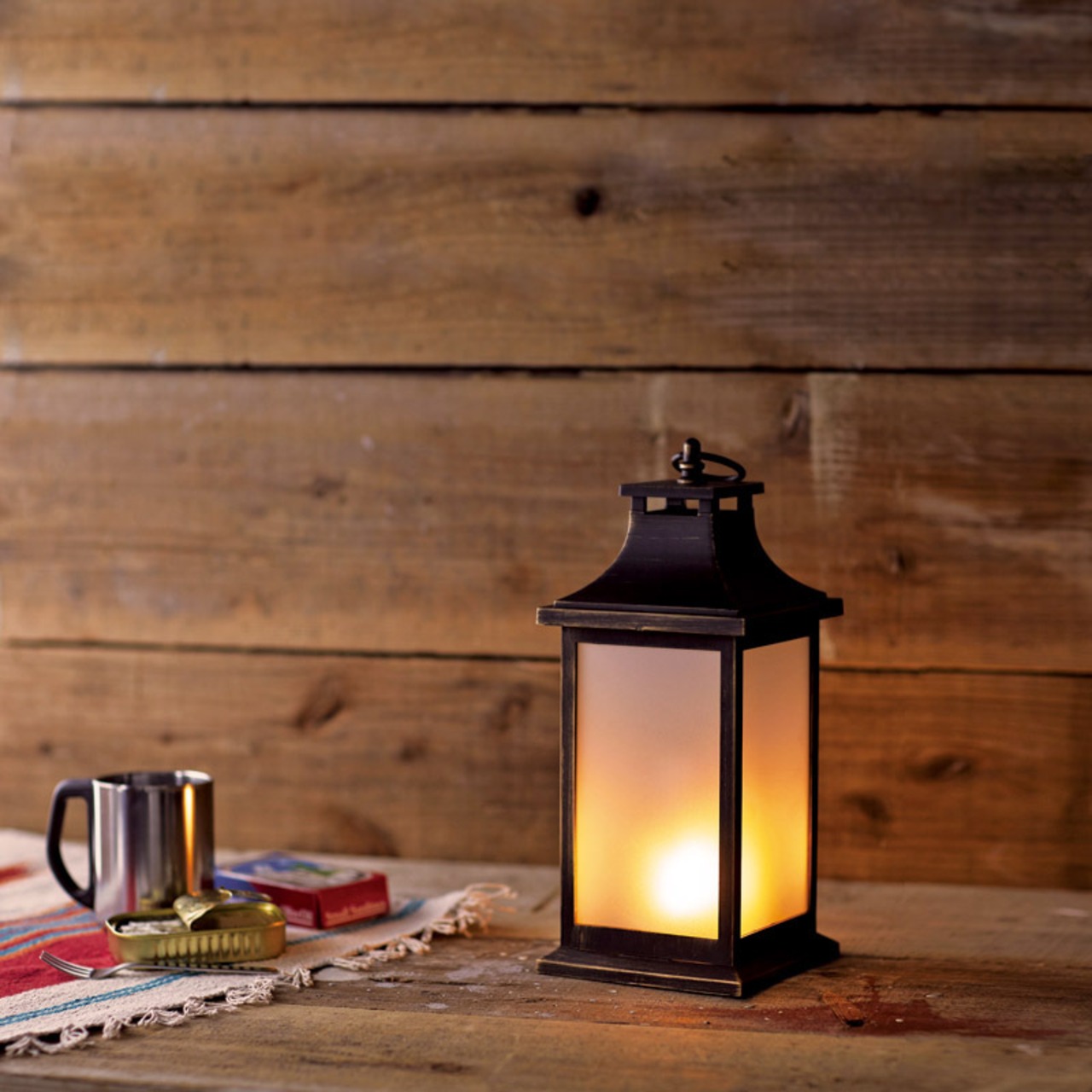 すりガラスの向こうでLEDが焚火の炎のように明るく揺らめくLEDランタン。手軽に非日常感を演出できるアイテムです。LEDなので小さなお子様やペットが触れても安心。プラスチック製だから軽くて持ちやすい。連続点灯時間:約100時間。単4乾電池3本使用(別売)。