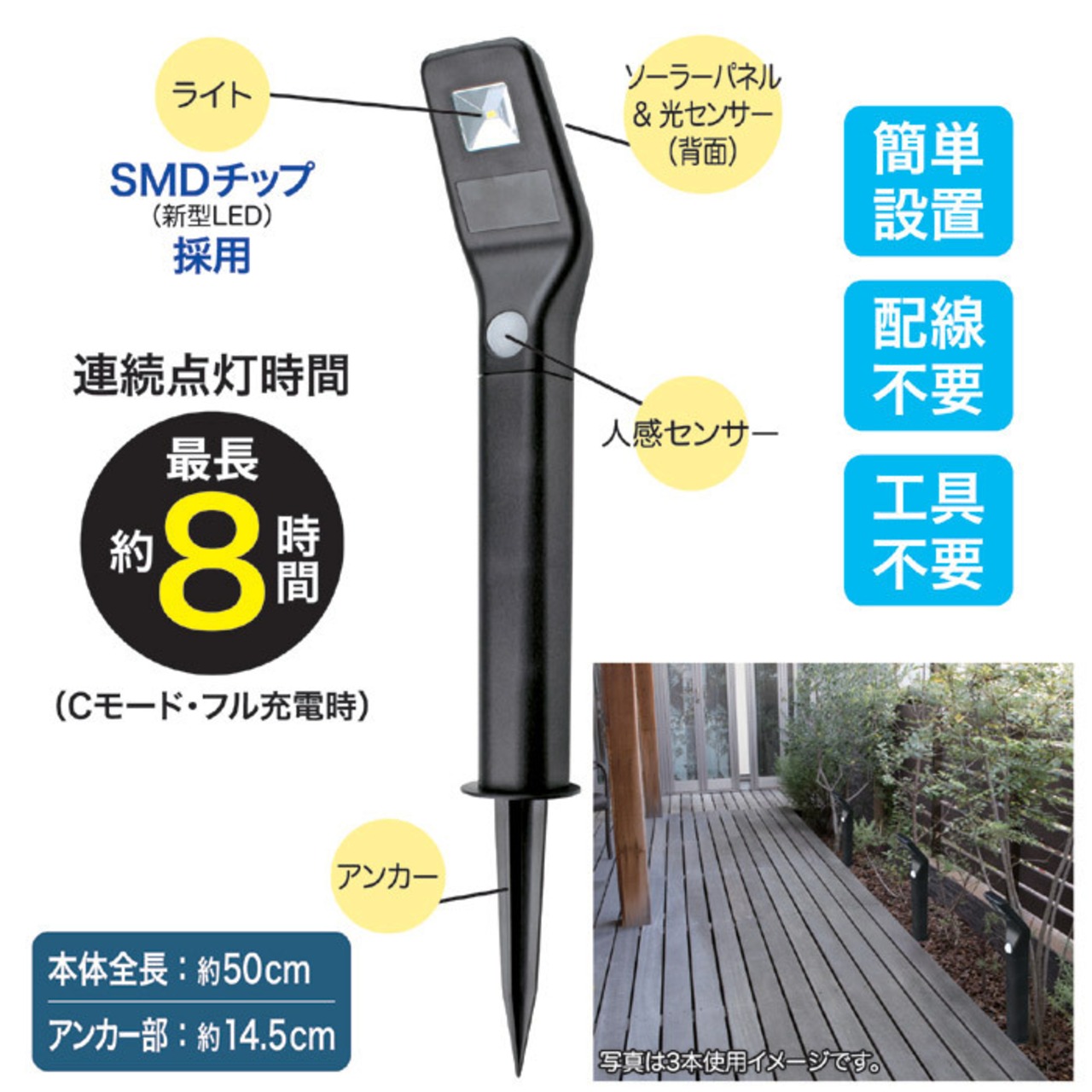 ●ソーラー充電だから設置がカンタン
