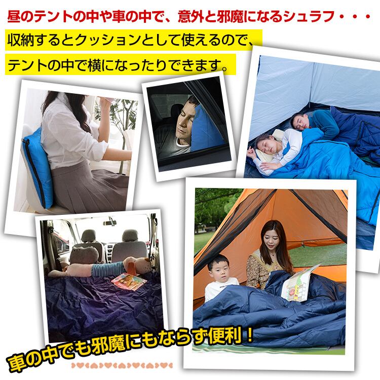 クッションシュラフ 3WAY 2カラー アウトドア 車中泊 防災時 連結可能 クッション 寝袋 シュラフ
