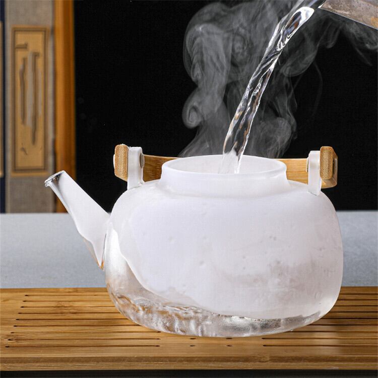 ガラス ティーポット 大容量 デザインセンス 新品 家庭用 木製 ハンドル ケトル