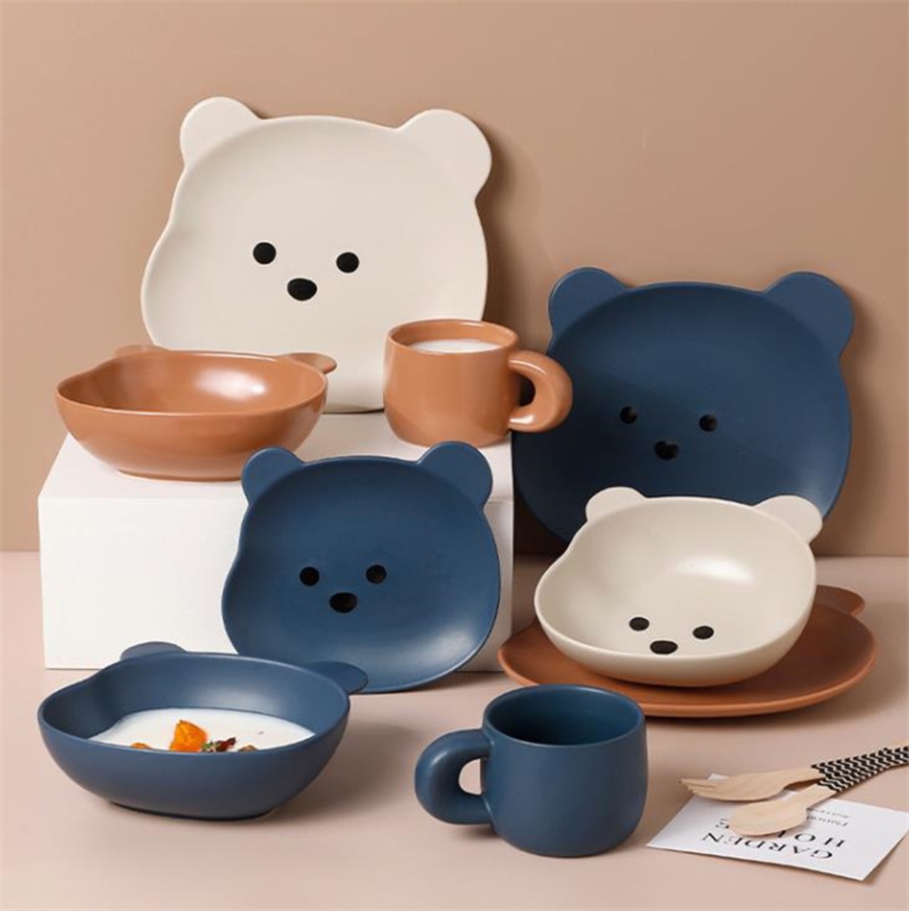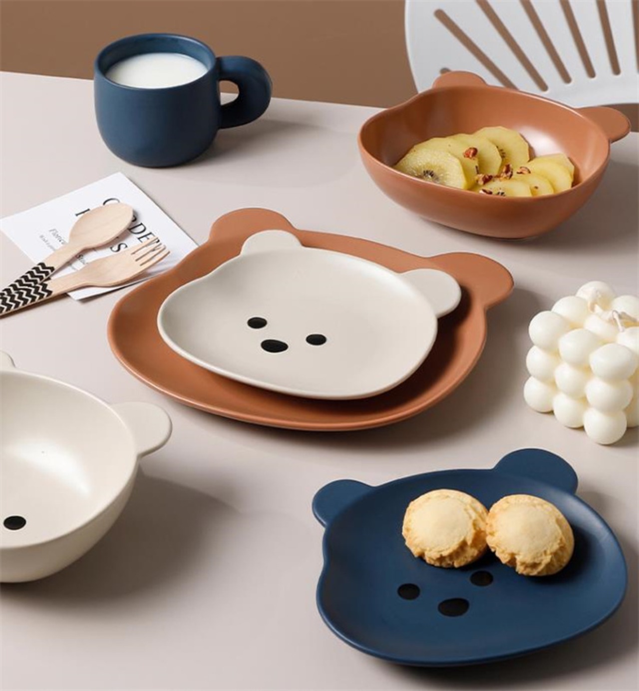 セラミックボウル ベアの形状 ディスク セット ホーム サラダ 朝食プレート 食器 デザートプレート