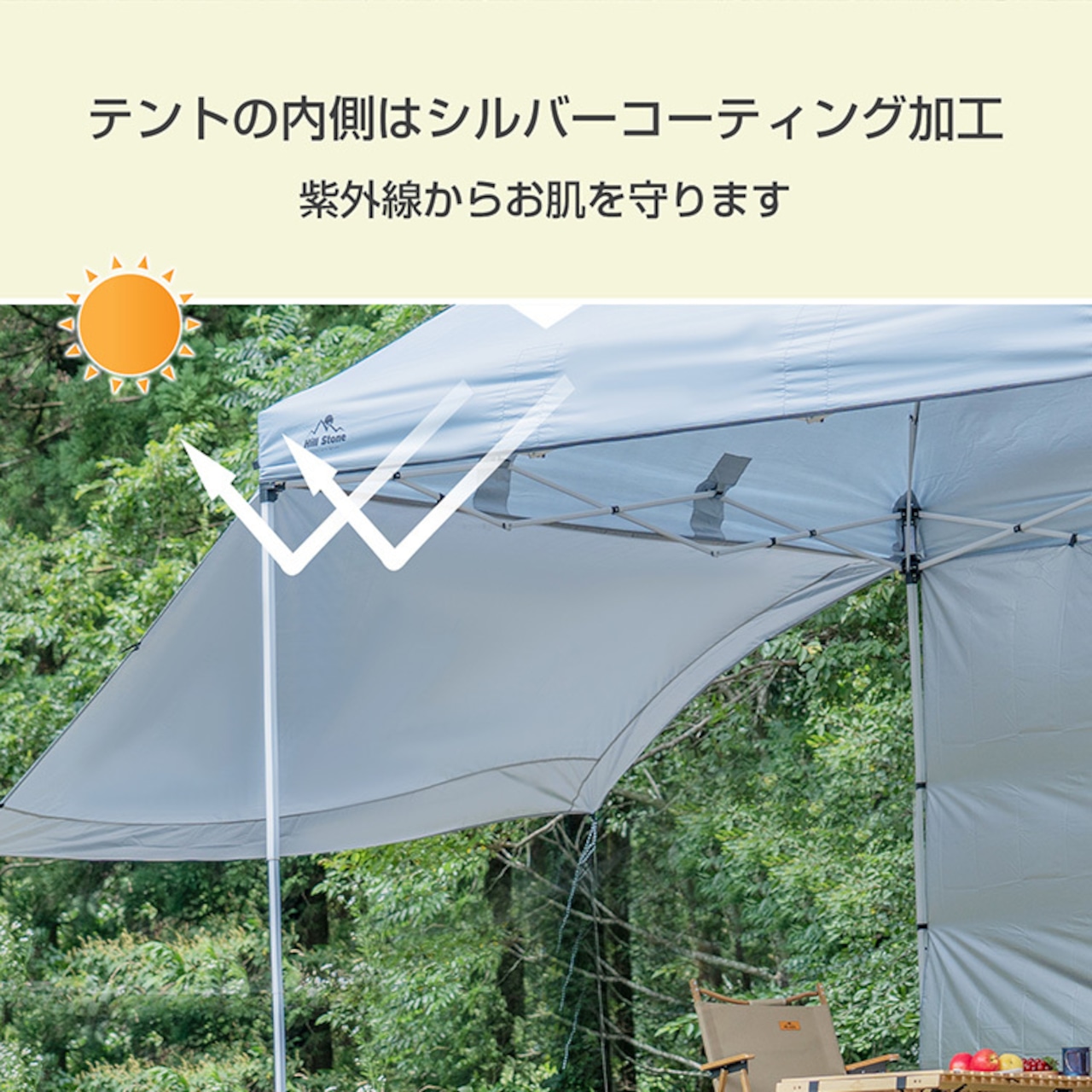2mタープテント サイドシート1枚付き ワンタッチ テント本体 簡単 大型 軽量 日除け UV