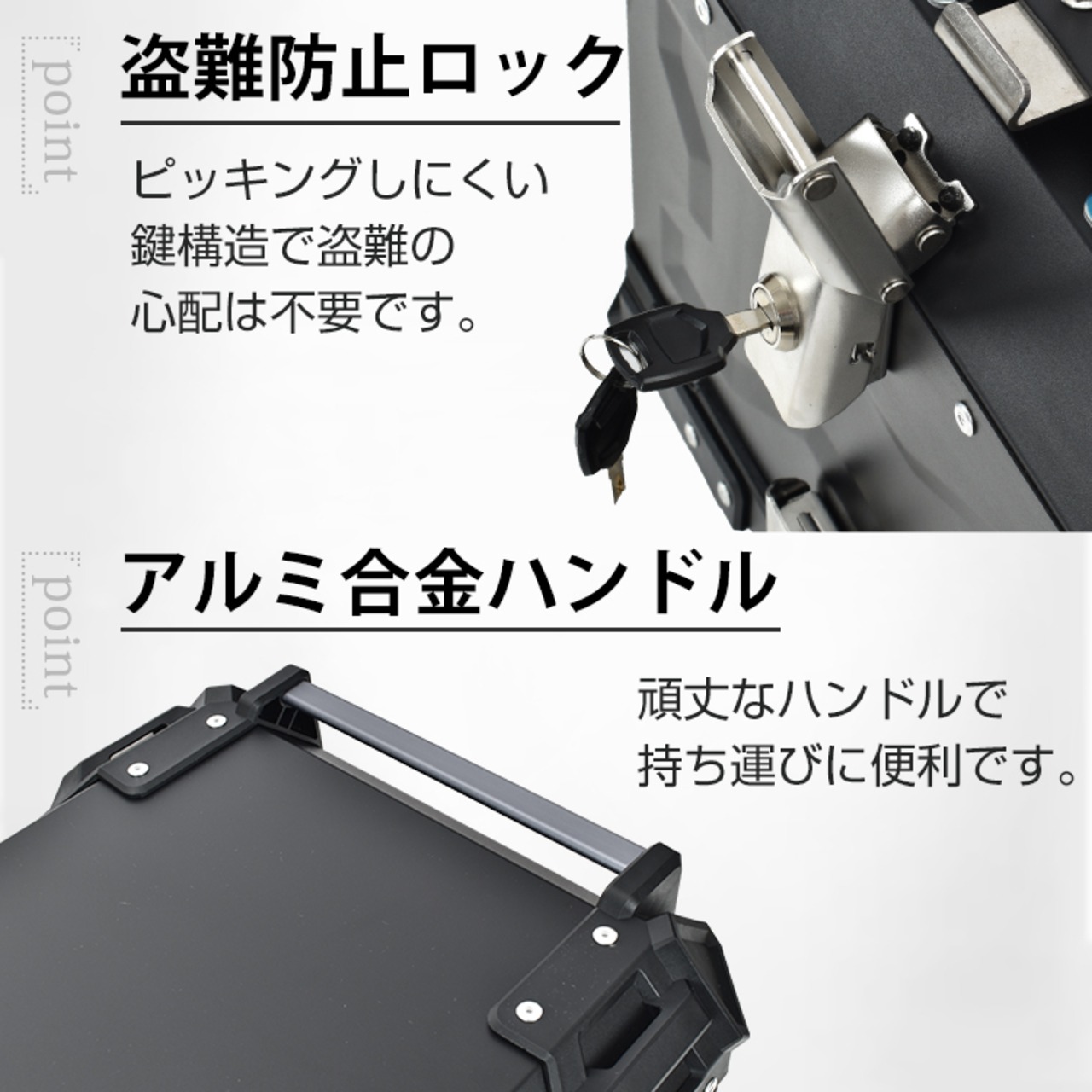リアボックス バイク用 45L 55L 65L 大容量 防水 防塵 アルミ 取付ベース付 鍵2本付