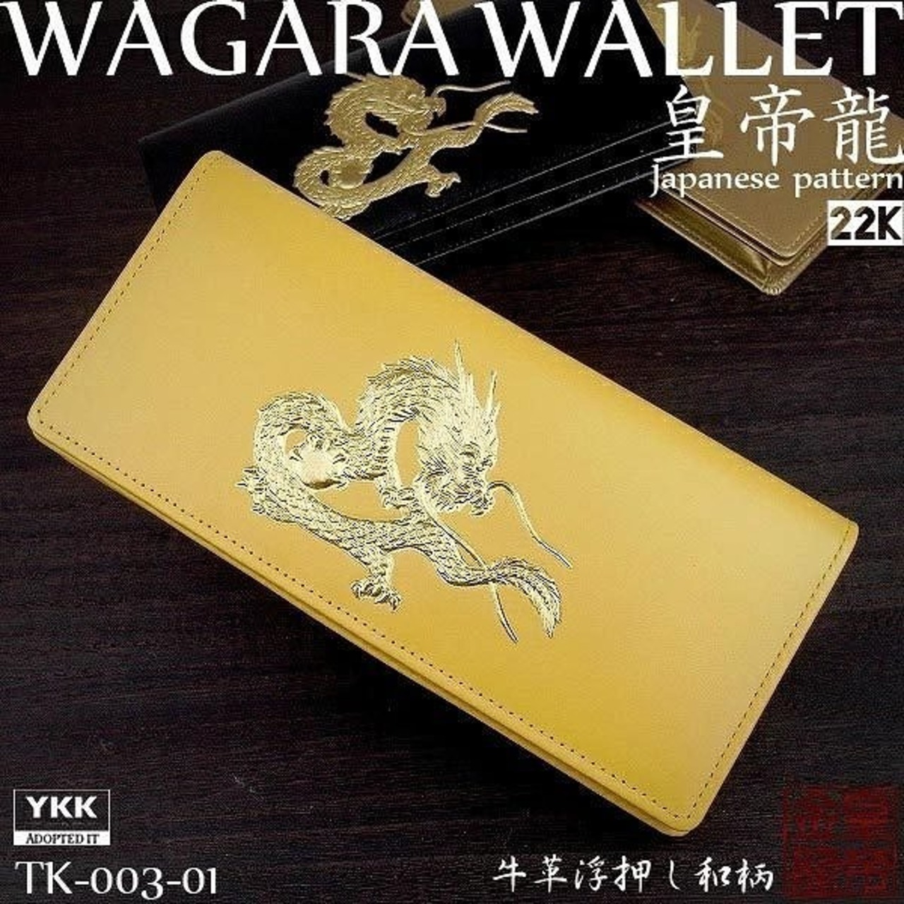 牛革!22K金箔!金運上昇!幸運!皇帝龍浮き押し加工!日本製造!男女兼用!ロングウォレット