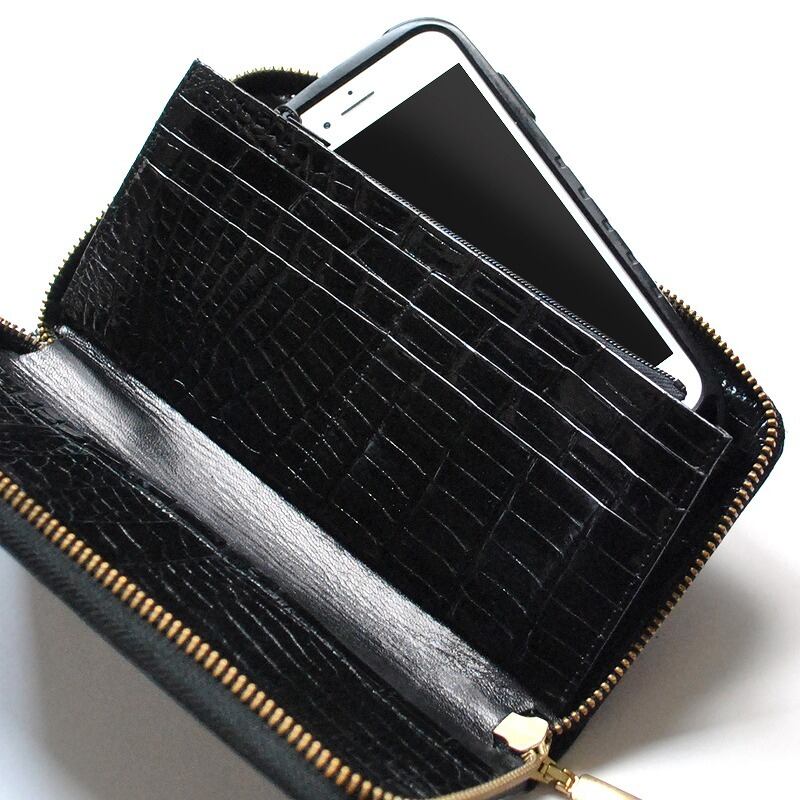 本クロコダイル革をセンターで1枚取りした贅沢な高級長財布。