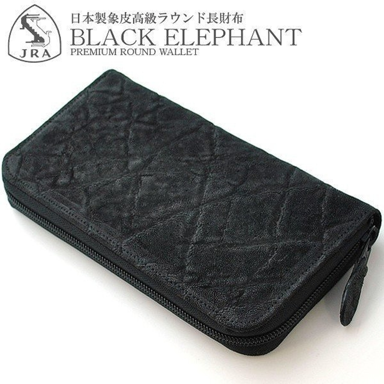 高級感!エレファントレザー!象革!日本製造!JRA認定商品!男女兼用!シンプルラウンドロングウォレット