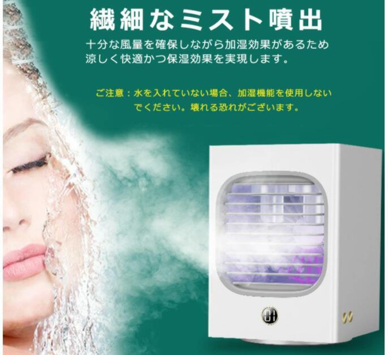 小型冷風機 ミニエアコンファン ミニクーラー 熱中症と暑さ対策 冷却 加湿 風量3段階切り替え ライト付き