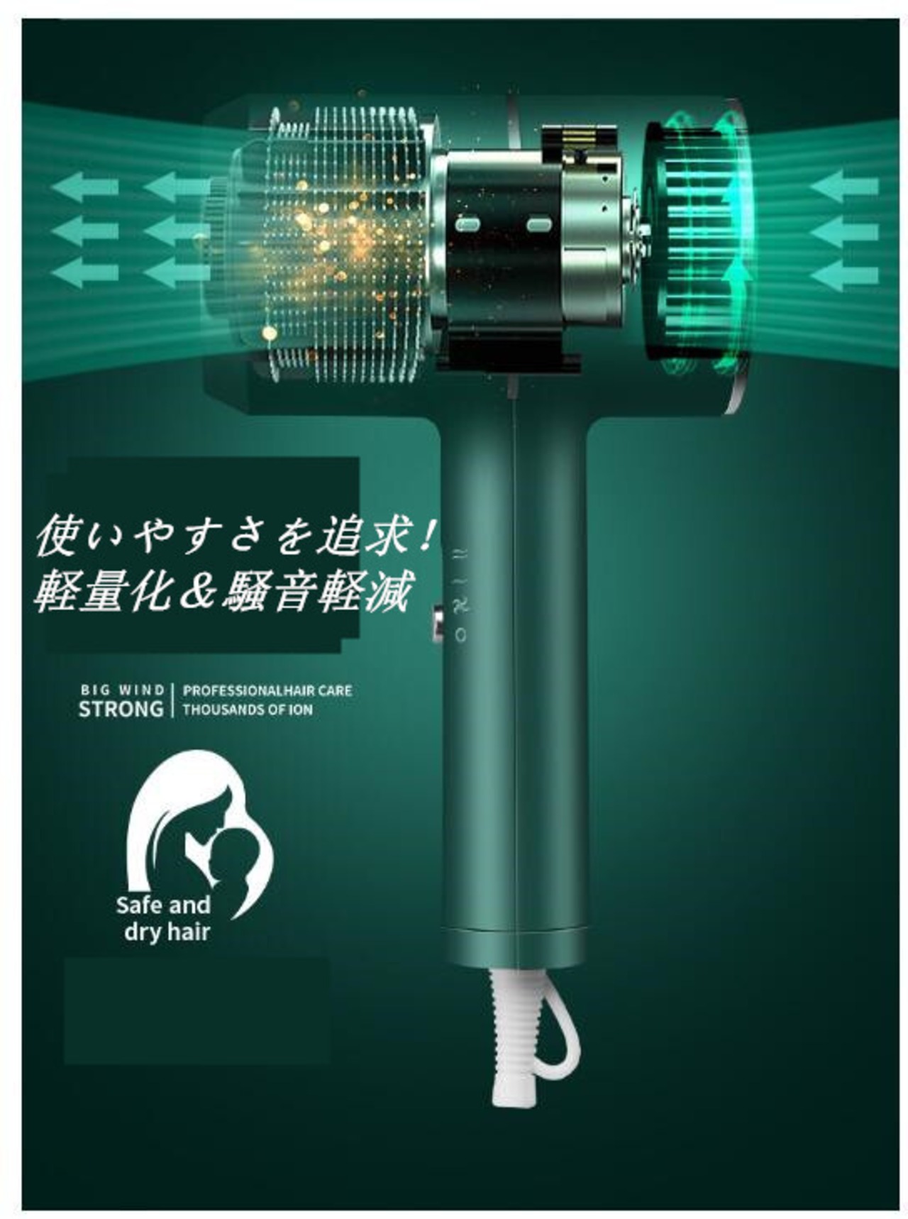 普通なヘアドライヤーより、50%の時間を縮めることができ、髪を傷めず早く乾かすことができ、