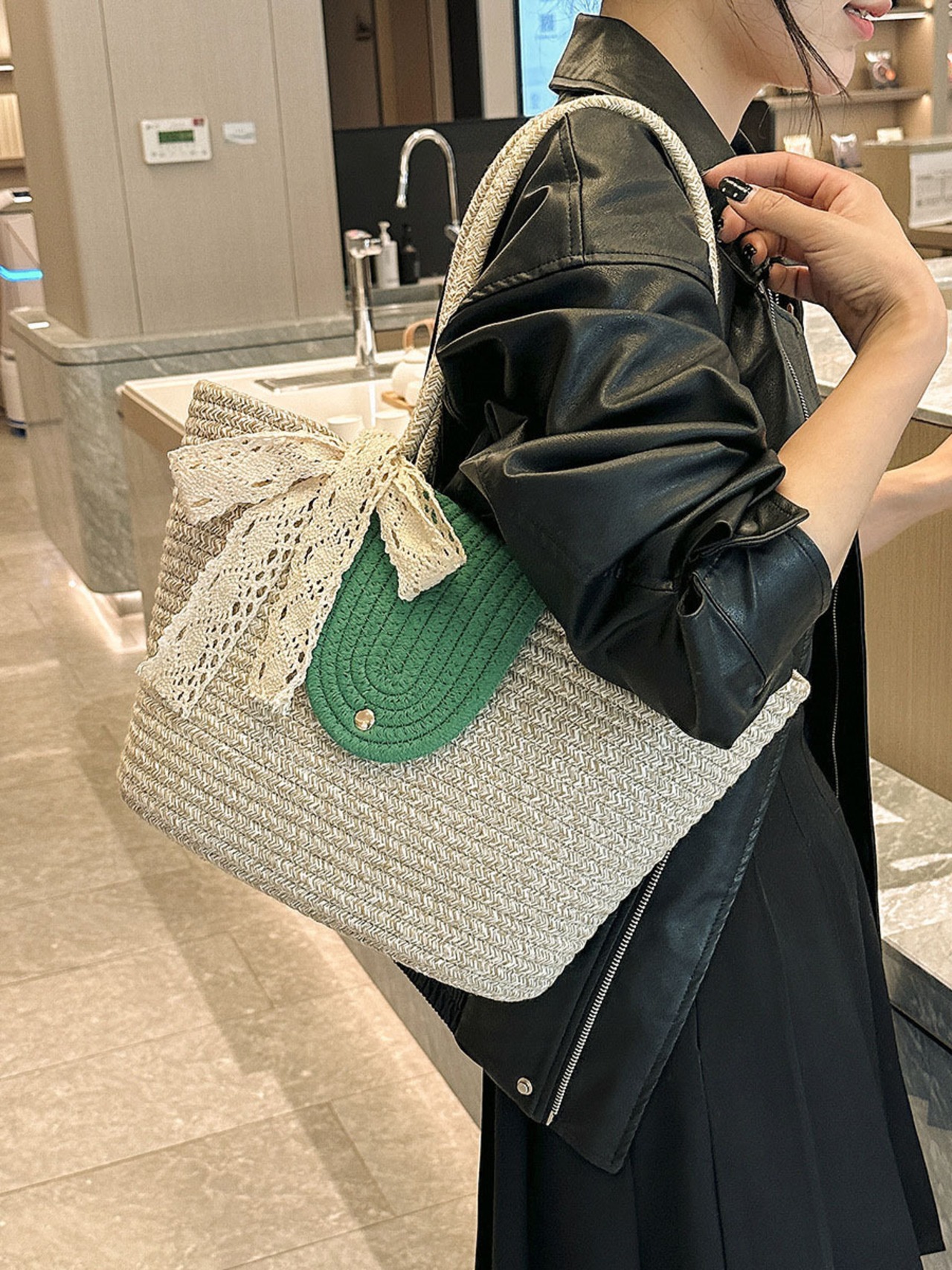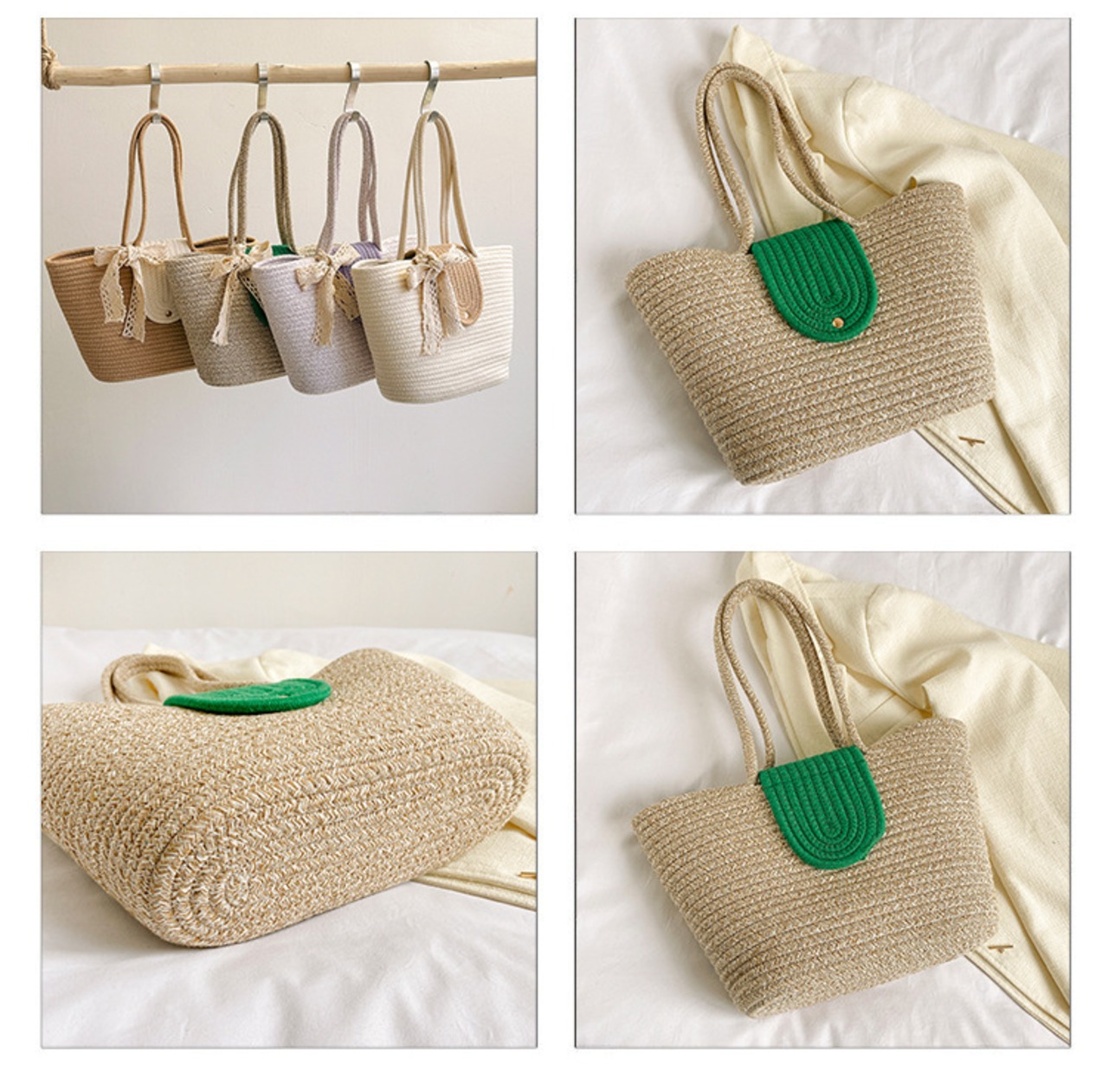 2024新作 トートバッグ 麦わら風 かご風 ストローバッグ ナチュラル かわいい 大容量 軽い 夏バッグ