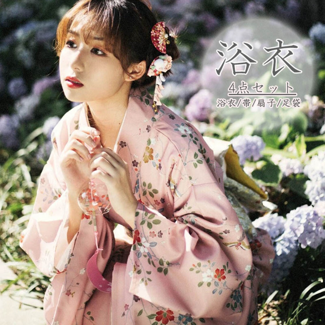 浴衣 4点セット 高品質 フリーサイズ 浴衣セットゆかた 帯 浴衣セット イベント 花火大会 ピンク 夏祭り