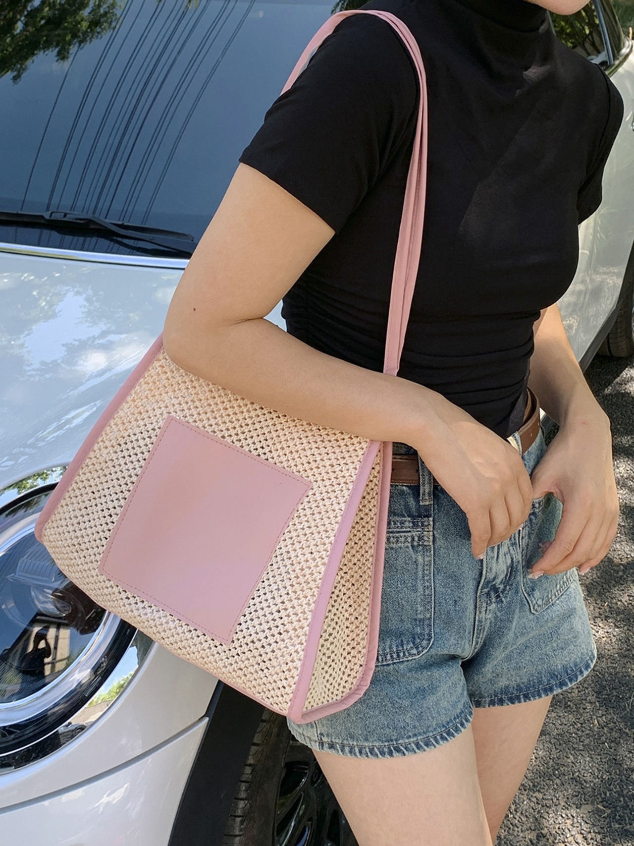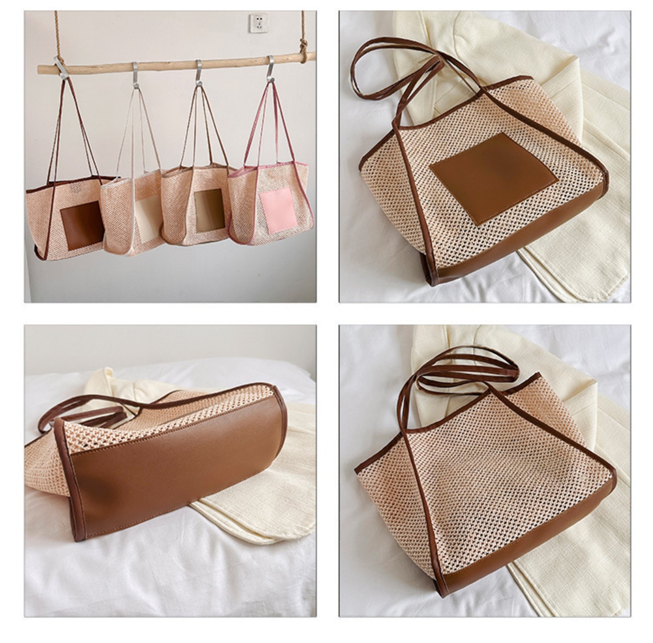 2024新作 トートバッグ 麦わら風 かご風 ストローバッグ ナチュラル かわいい 大容量 軽い 夏バッグ