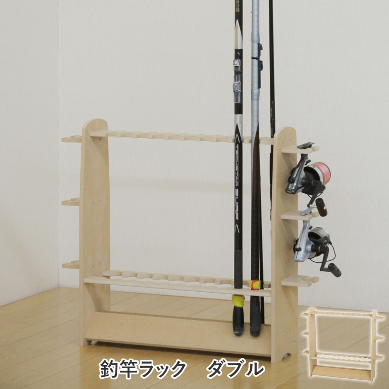 お気に入りのロッドをすっきり収納できるダブルタイプの釣竿ラックです。