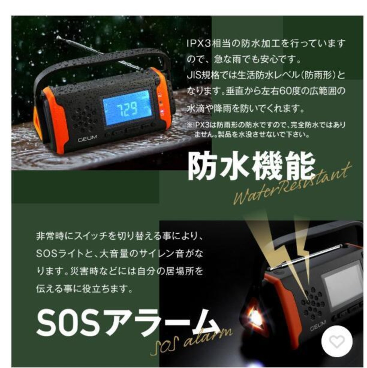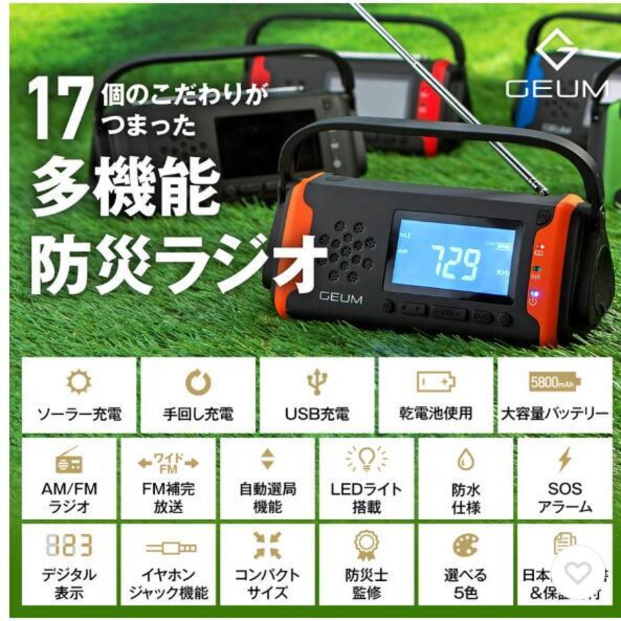 防災グッズとして非常にオススメ。万が一に備えて、様々な機能(ラジオ、LED電灯、充電器)として使えるため、そばに1台を置くと安心できる。更に、ソーラー充電機能と乾電池が使えるため、非常に使い勝手がよい!