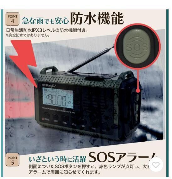 多機能防災ラジオ 10000mAh 防災グッズ AM/FMラジオ LEDライト スマホ SOS USB充電 ソーラー