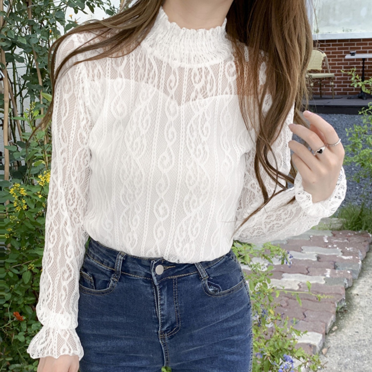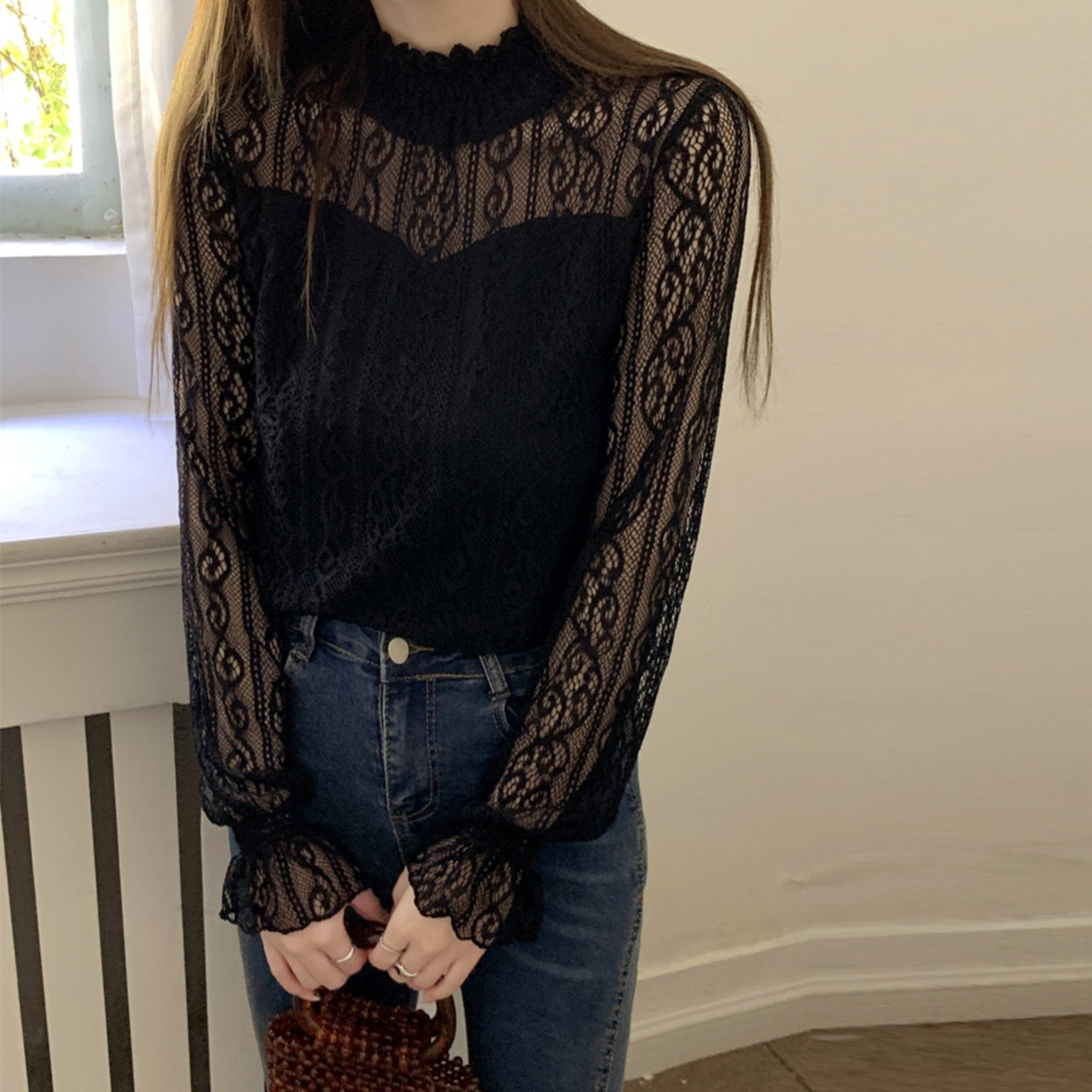 長袖 レースシャツ 透け感 ブラウス セクシートップス
