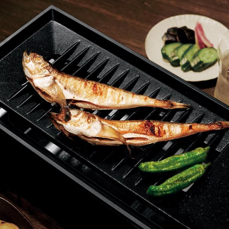 調理中の煙、油跳ねを軽減した炉端焼き器。ご自宅でお酒を楽しみながらちょっと贅沢なおつまみをテーブルで楽しめます。