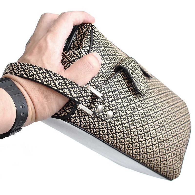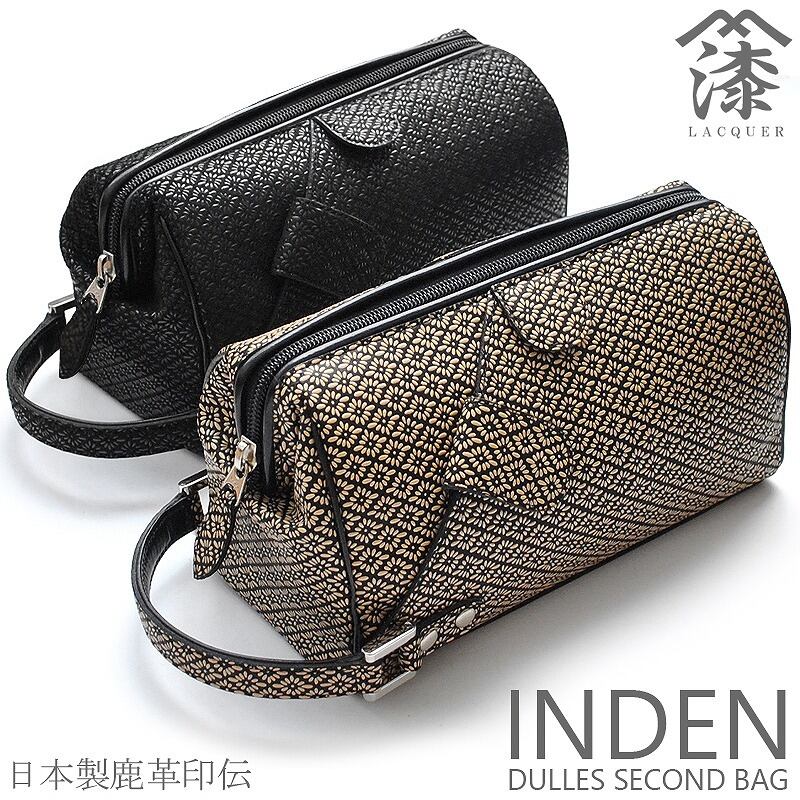 鹿革に漆で立体的な紋様を浮き押しを施す江戸時代から続く奈良県の伝統工芸印伝を用いたミニダレスセカンドバッグ。