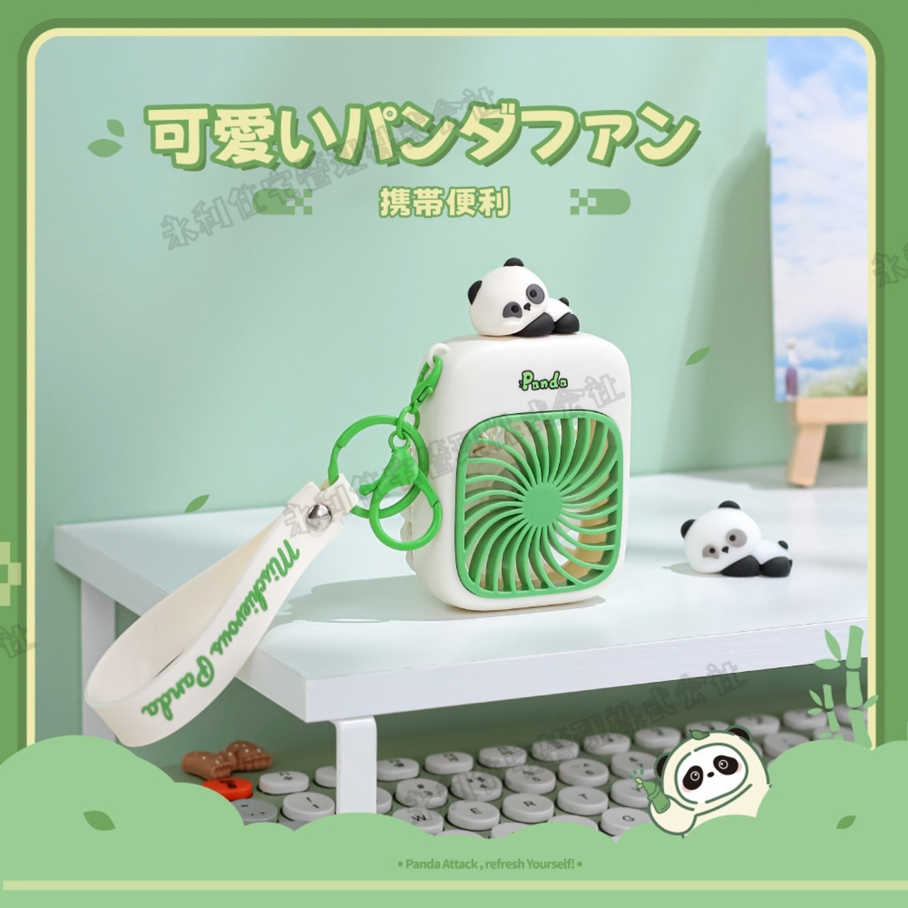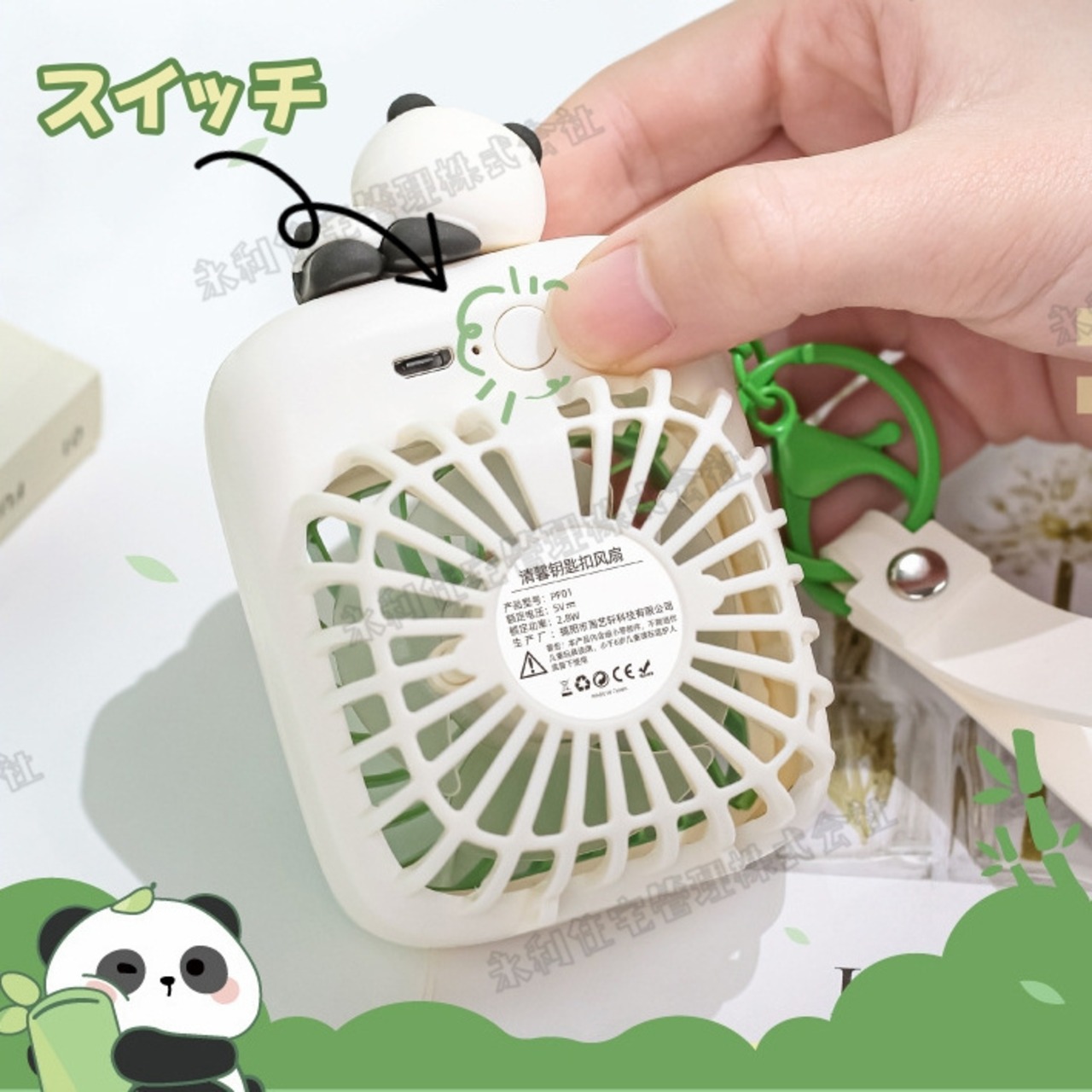 ファン 扇風機 手持ち扇風機 3段階風量 熱中症対策 充電式 携帯便利 可愛い 卓上 パンダ