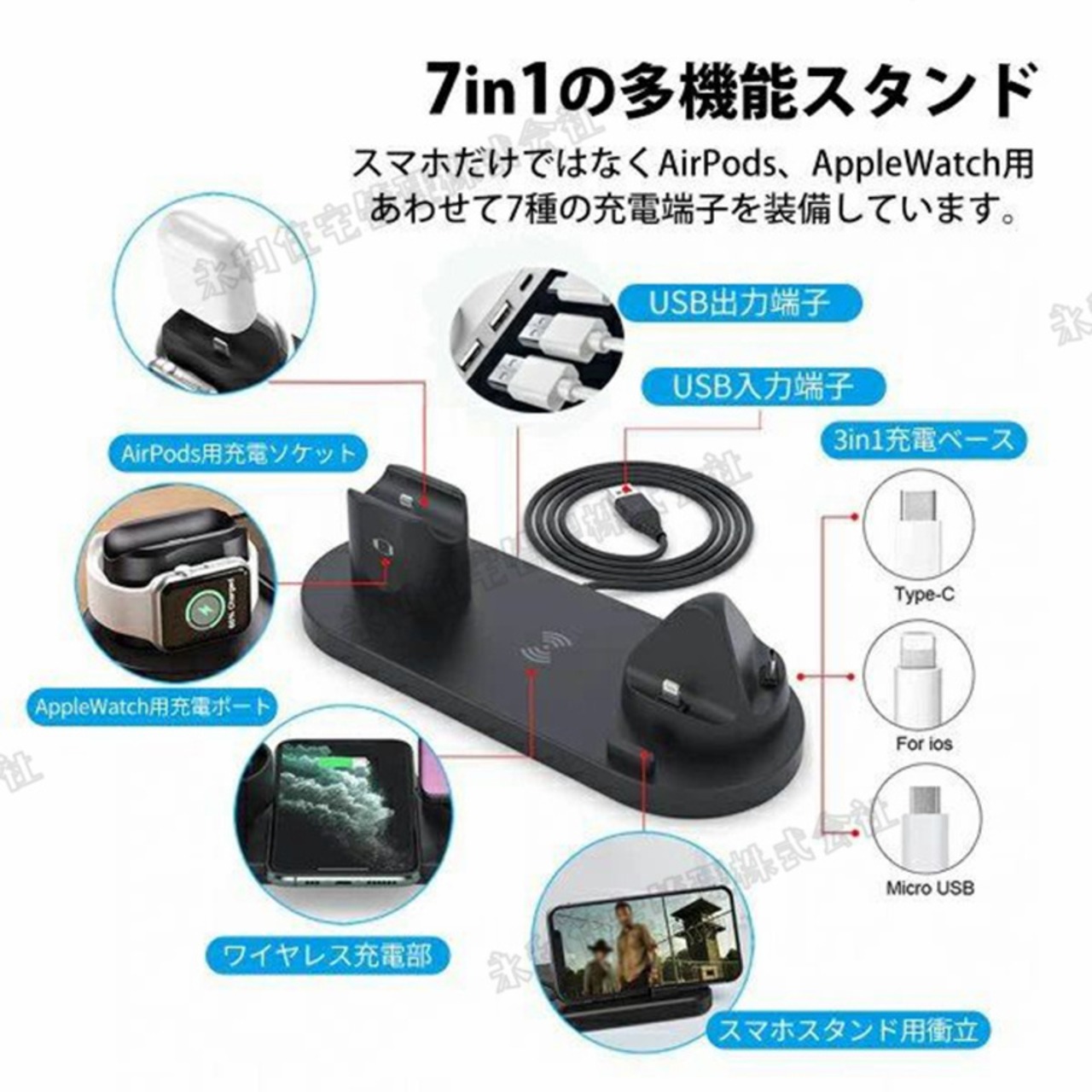 【2Colors】6in1充電器 ワイヤレス充電器 充電器 スマホ アップル ウォッチ ワイヤレスチャージ Type-C
