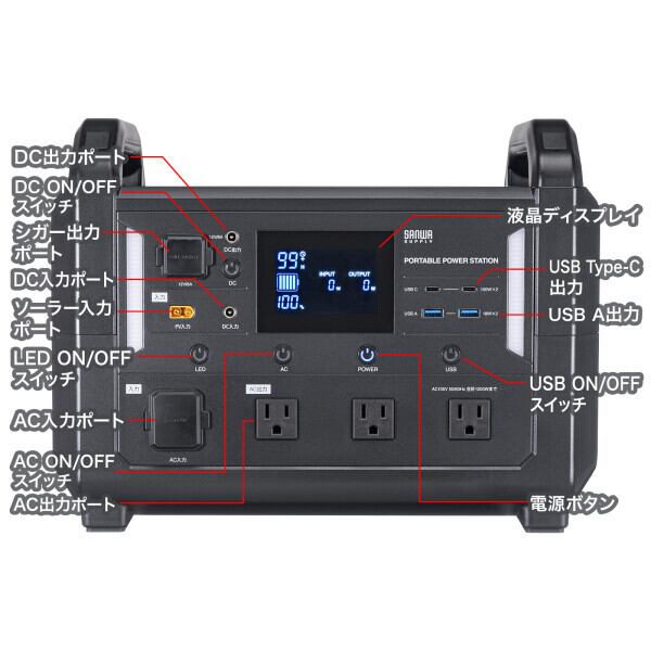 ・AC出力、USB Power Delivery規格最大100Wに対応したUSB Type-C出力、USB A出力、12Vシガー出力と12VDC出力と5種類の出力に対応しあらゆるデバイスを充電できます。