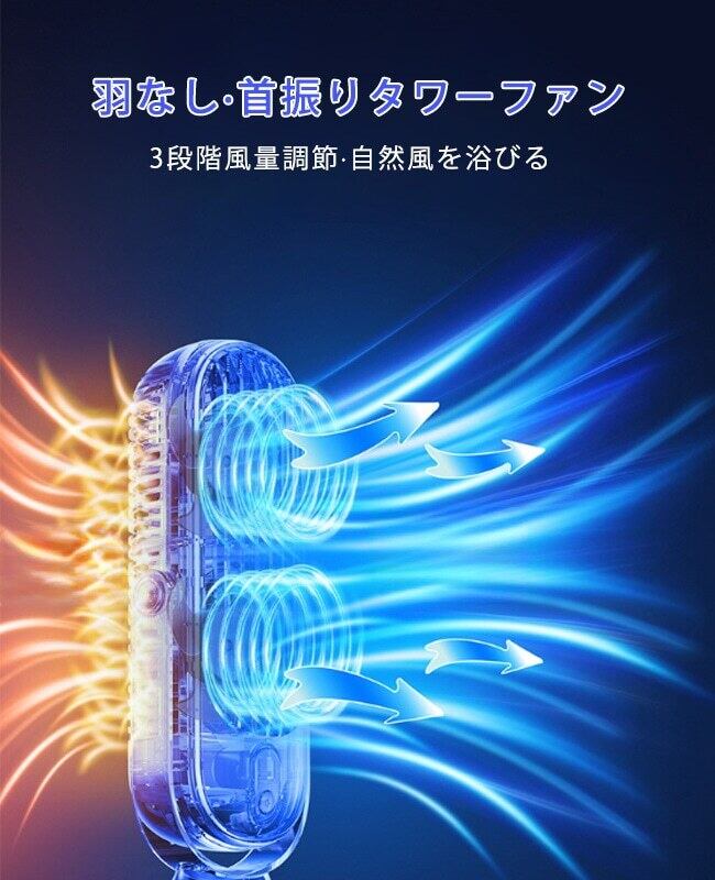 3段階風量調節 パワフル送風 ミニ扇風機 デスクファン 省スペース タワーファン