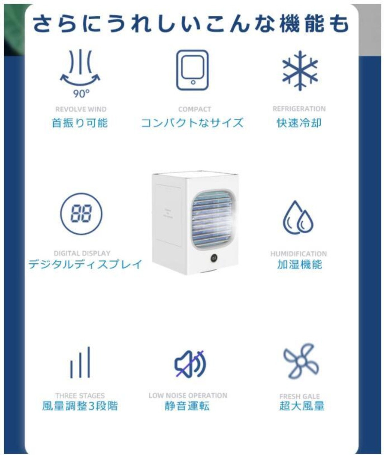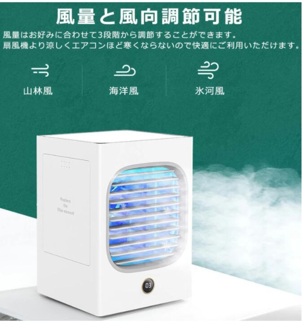 冷風機は送風/冷却/加湿と除菌の4タイプ機能を同時に備え、