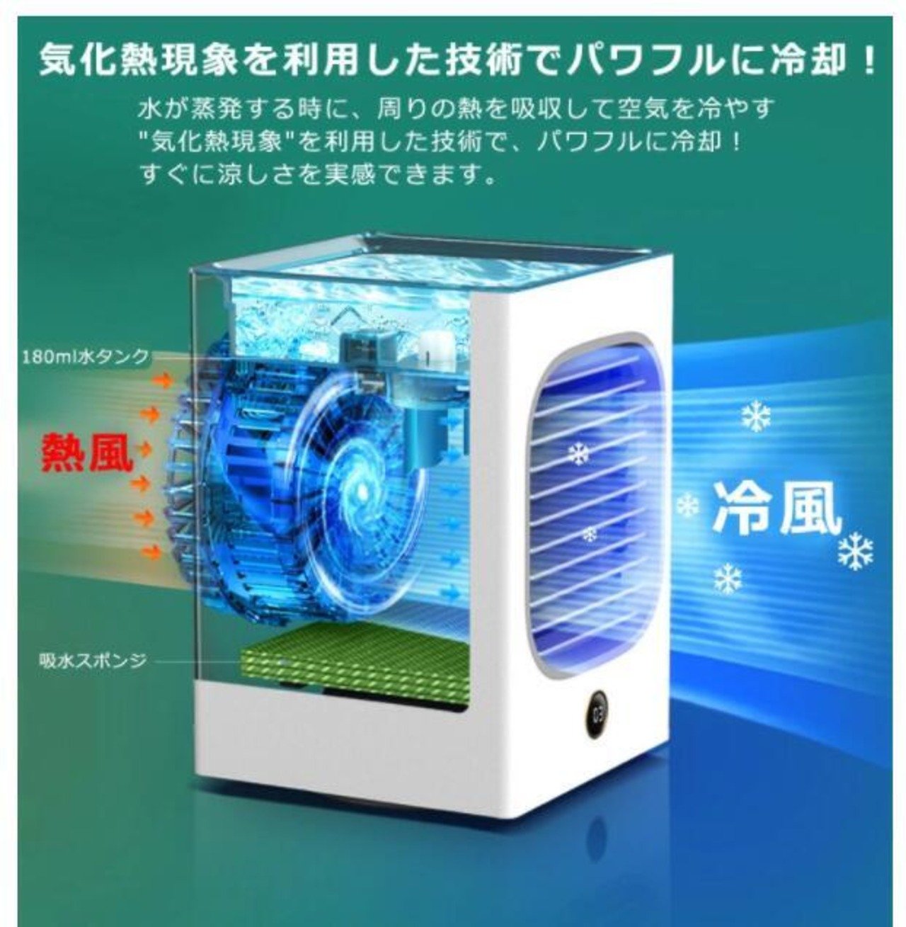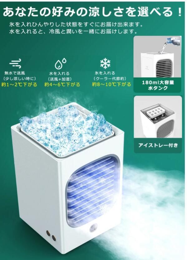小型冷風機 ミニエアコンファン ミニクーラー 熱中症と暑さ対策 冷却 加湿 風量3段階切り替え ライト付き