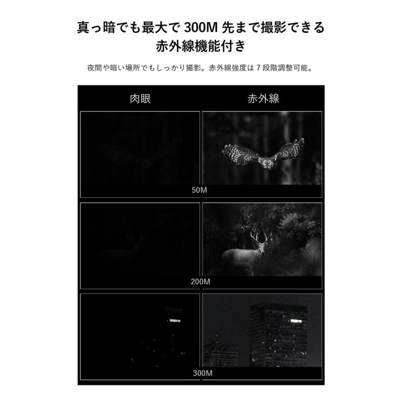 ★真っ暗でも最大で300M先まで撮影できる赤外線機能付き。夜間や暗い場所でもしっかり撮影。赤外線強度は7段階調整可能。