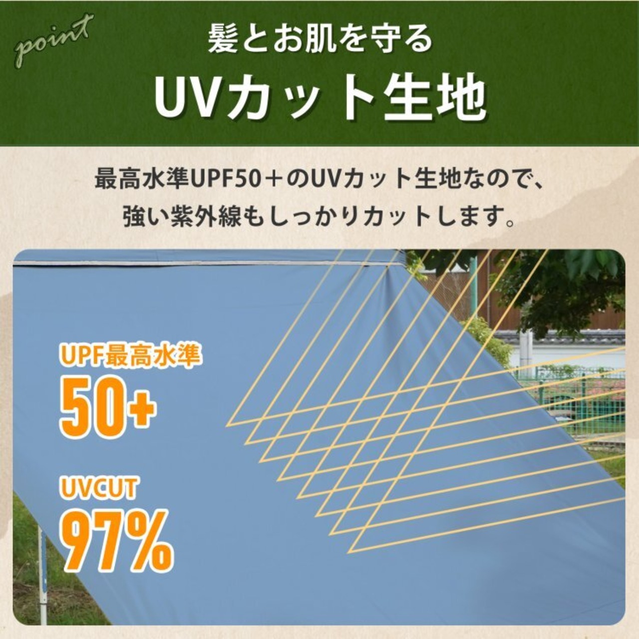 ■付属のロープとペグで斜めに張ると日陰スペースを拡張できます。
