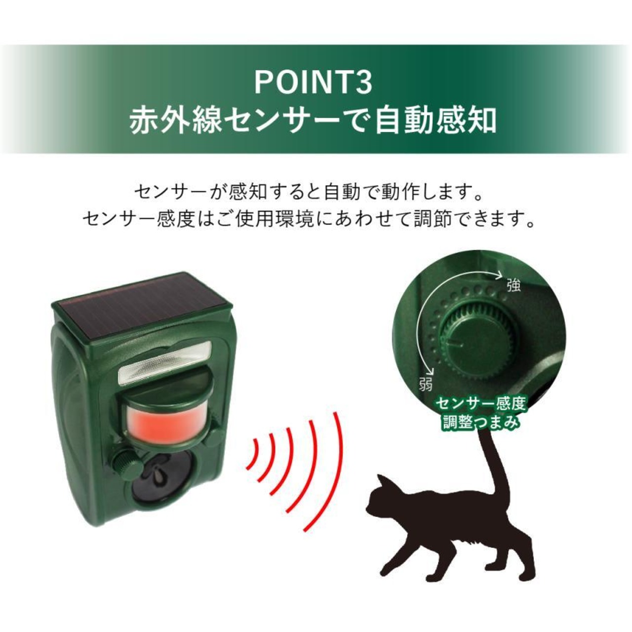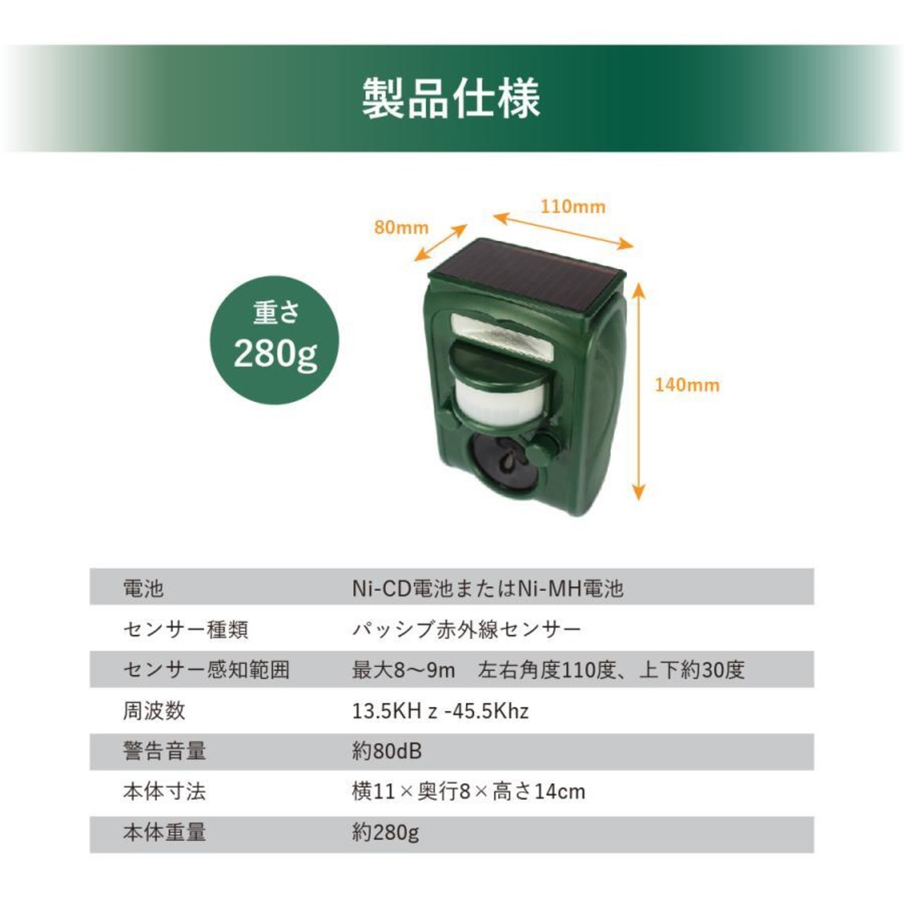 ★センサー感知範囲 約8m 角度110度 ※超音波を変動させることで動物の慣れを防ぎます。