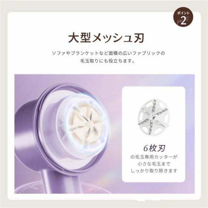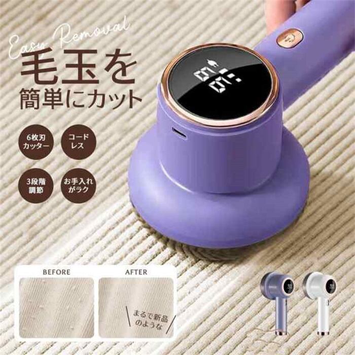 1【高速回転と高強度外刃】当毛玉切りには高速回転モーターがついています。パワフルなステンレス製ブレード6枚付き。切れ味抜群、高品質ステンレス超大型ブレード搭載し、毛玉を取り除くだけでなく、綿毛も取り除くことができます。自分の服を新しい服のようにします!日常生活に欠かせない毛玉除去器です。 2.【大容量バッテリー・LCD表示です】 800mahの大容量バッテリーを搭載し、長時間的に連続使用が可能です。さらに、充電しながらの使用やコードレスにも対応できる2way給電タイプなので、使う場所にも困りません。LCD液晶ディスプレイを搭載し、動作状態や電力量を一目で確認でき、いつでも残量を監視できます。 3.【3段階調整】ボタンひとつで3段階に調節可能。ロー、ミディアム、ハイの3段階に調整可能。振動ブレードのため、傷はつきません。材料の生地を保護しながら余分な毛玉を除去することができますが、織物を傷つけることはありません。