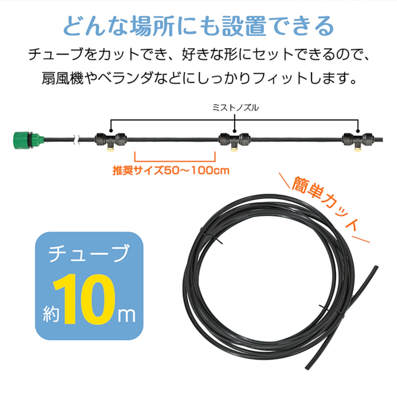 ■好きな場所にノズルを取り付け可能!必要な場所に絞ってミストを散布できます。
