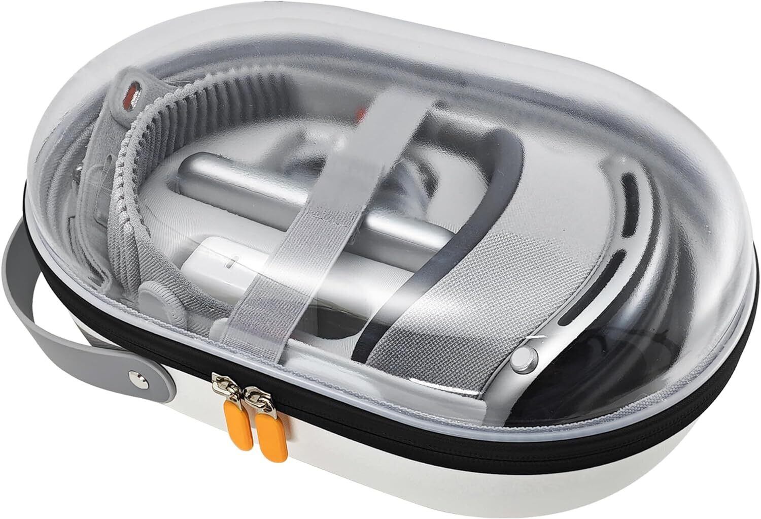 Apple Vision ProとEliteストラップを含むアクセサリーを一緒に持ち運べるコンパクトなケース。