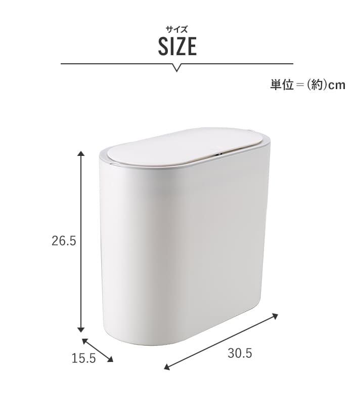 小さくてスリムなフタ付きゴミ箱です。