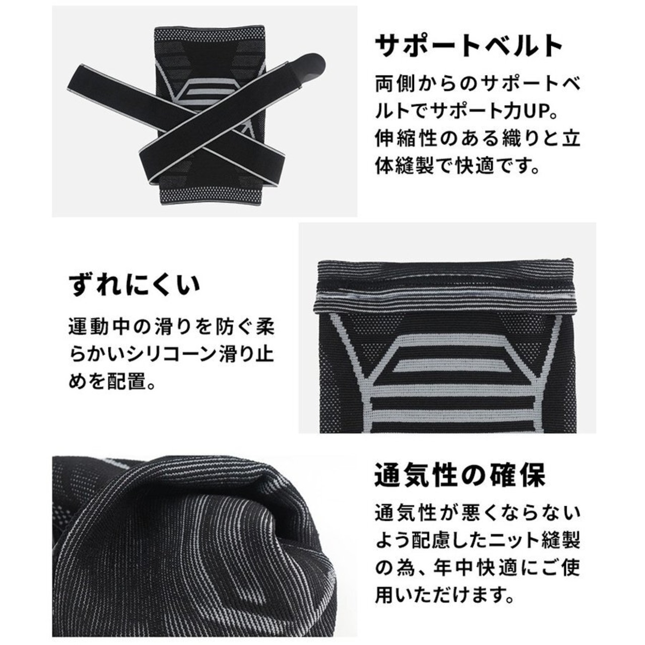 ■商品名■ニーリフレクター 同色 2枚セット■商品説明■人気の膝サポーターがベルト付きにアップデート。3D立体編みやシリコンドットとのマッチングにより、運動・歩行・日常生活での使用時にずり落ちずに着用できます。肌への負担もすくなく簡単に着用できます。通気性に優れた伸縮素材を使用し膝にフィットし快適な動きやすさを実現。薄手なのでムレにくく不快な食い込みを軽減し、汗ばむ季節でも快適に着用できます。激しい動きにも対応した本格スポーツ仕様なので頻繁にしゃがんだりする方、立ち仕事の方の動きも幅広くサポートします。■サイズ■M:(長さ)28cm(上部周囲)34-54cm(下部周囲)30-50cm