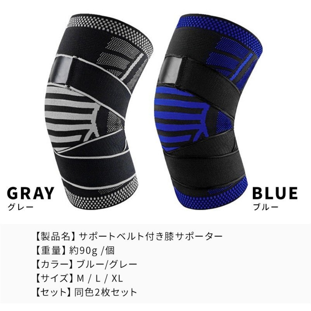 膝サポーターベルト付き 2枚セット ニーリフレクター 膝 サポーター ひざ薄型 運動用 スポーツ