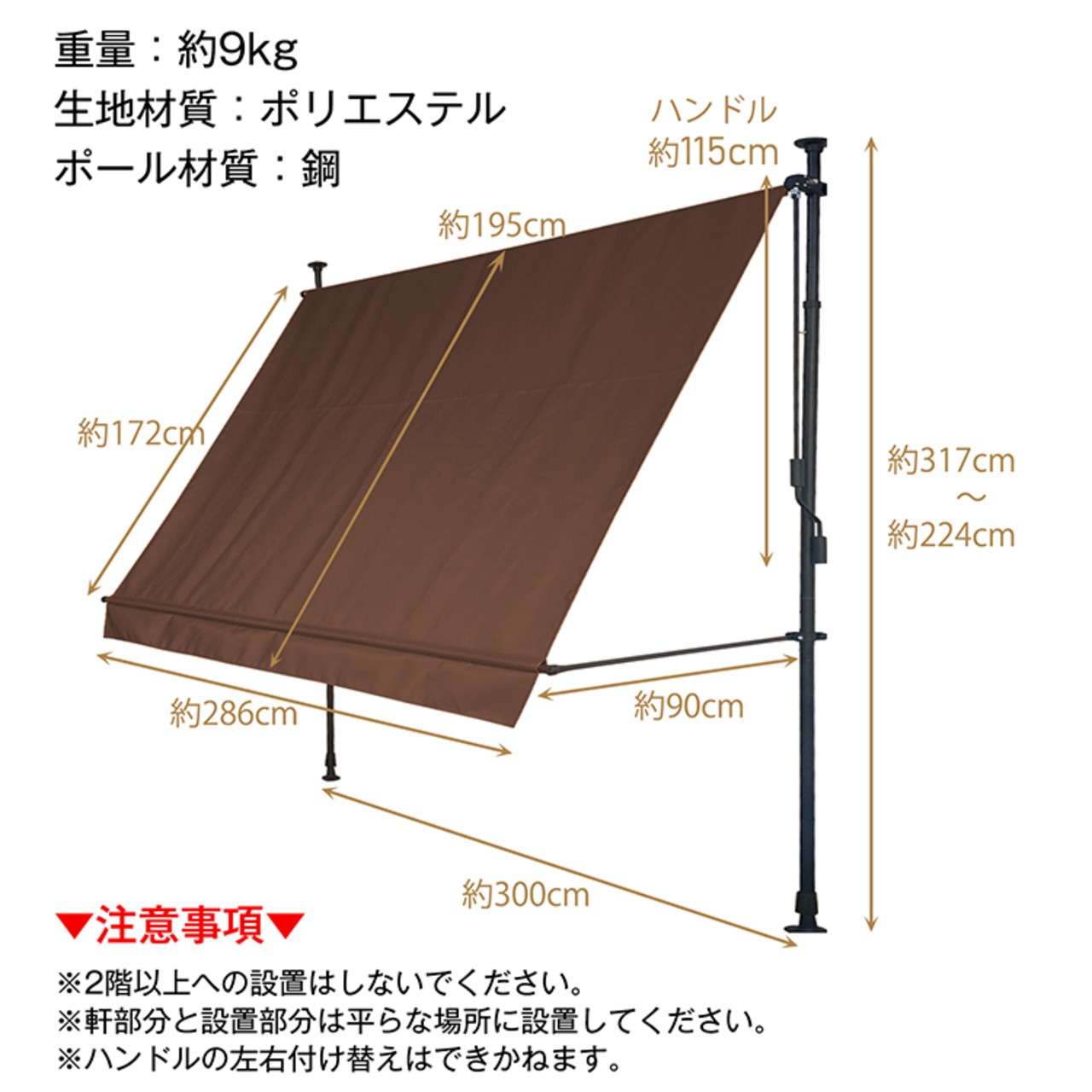 日よけシェード サンシェード 3m 庭 ベランダ サマーオーニング オーニング シェード オーニングテント