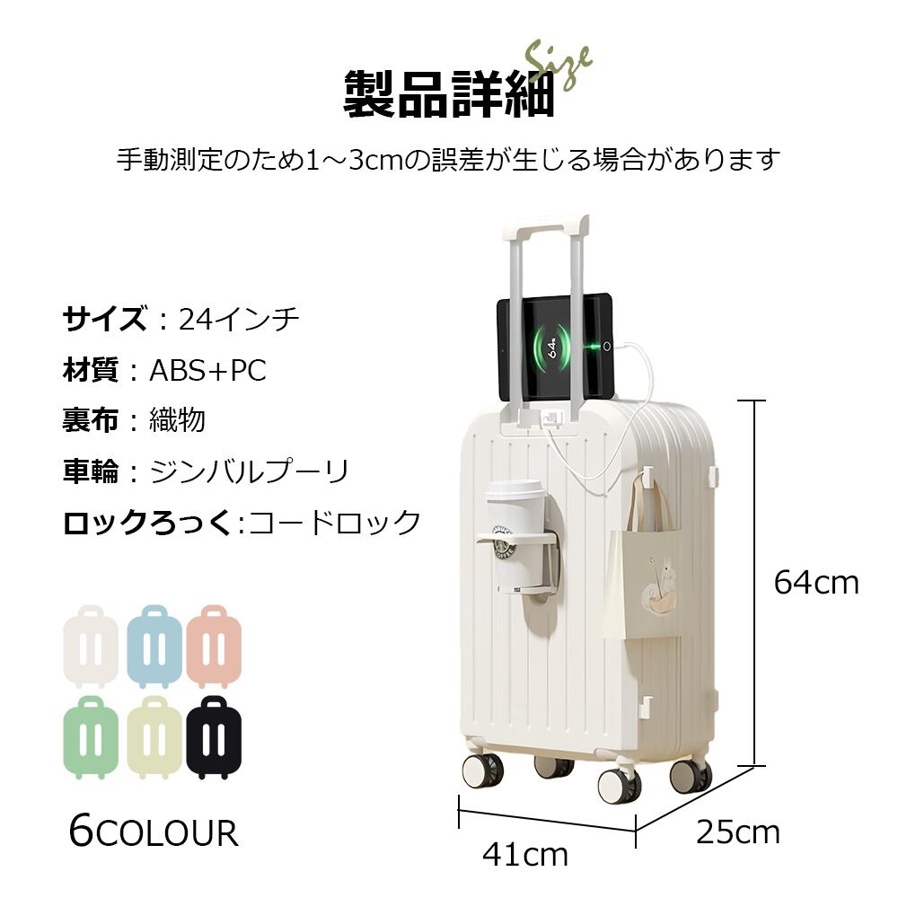 注意事項 モバイルバッテリー対応:USBケーブルやアダプターは同梱されていません。スーツケース内部からの充電はできませんので、モバイルバッテリーを外してご使用ください。